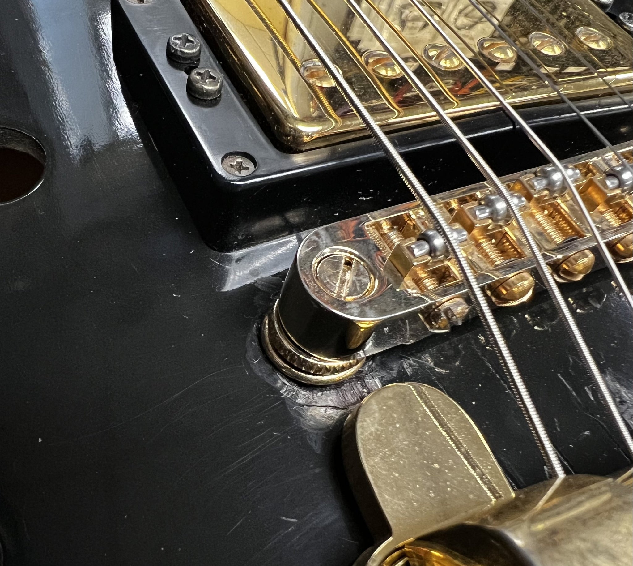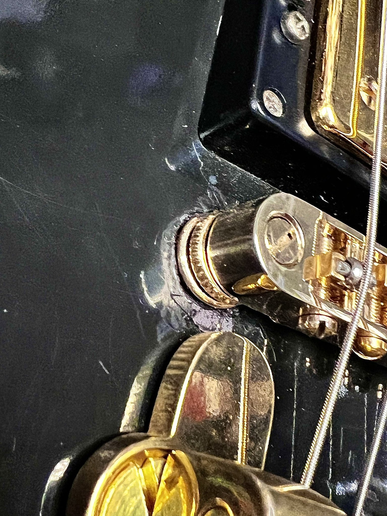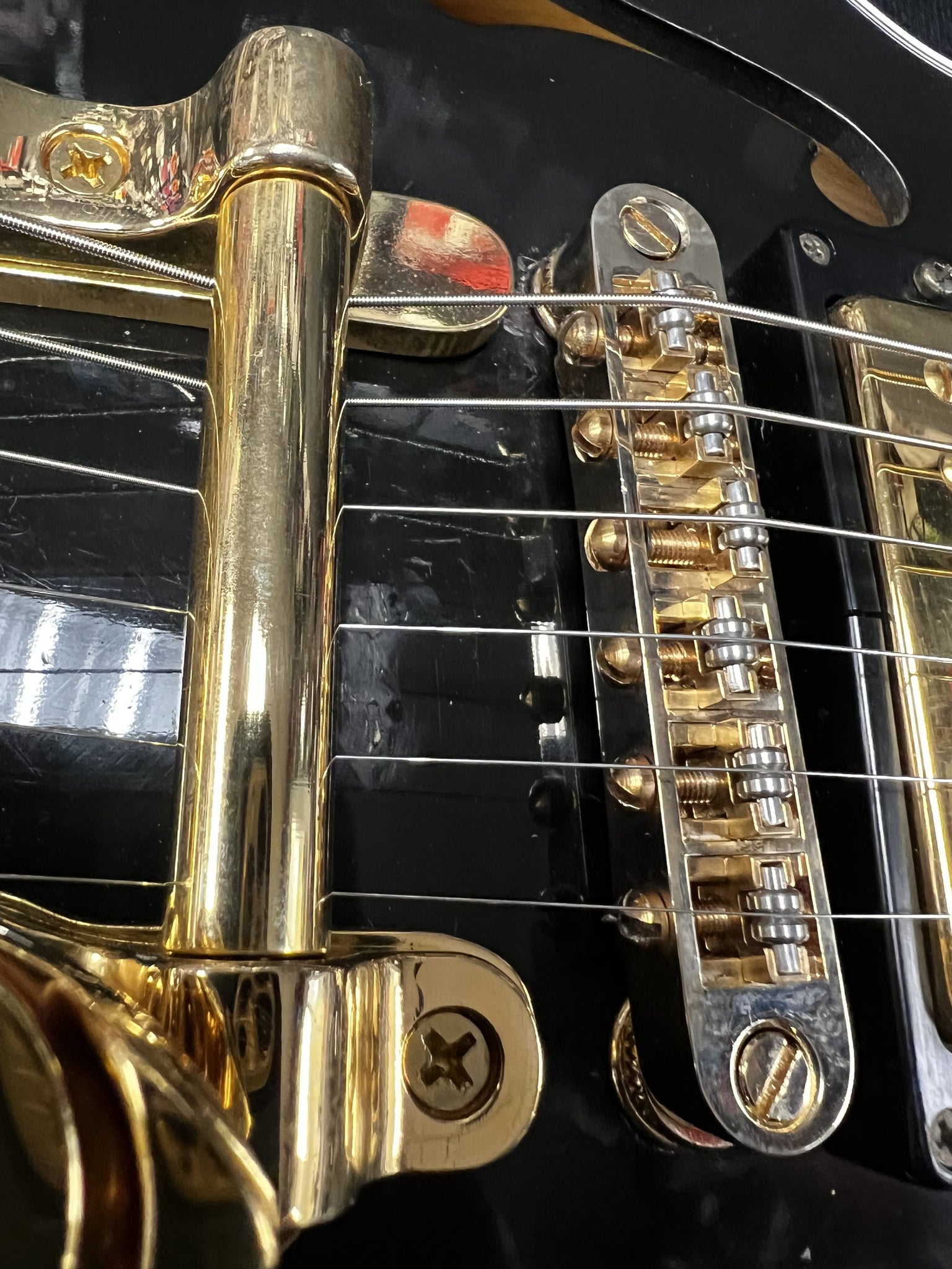 Cosmetics: This guitar is in great shape. It has light surface scratches on the body. The back of the neck is clean, and the frets show minimal wear. Slight damage in finish due to post change when the Bigsby was added. (pictured) The back has light buckle rash. Overall, this guitar plays very well and sounds fantastic. The Bigsby is not stock.