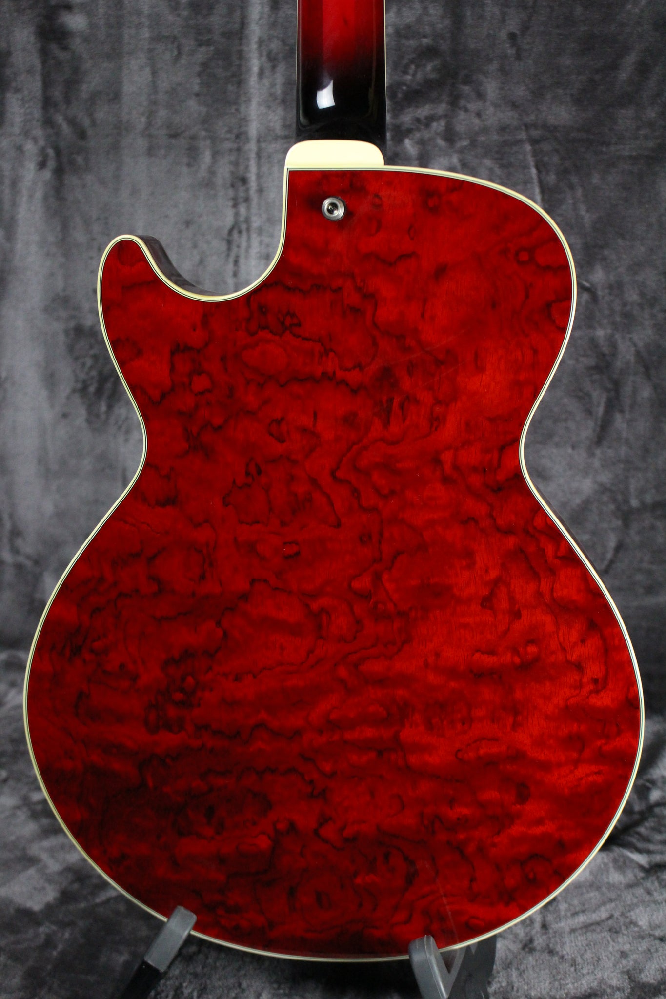 Body: Figured Bubinga top, back and sides in Transparent Red Gloss finish.