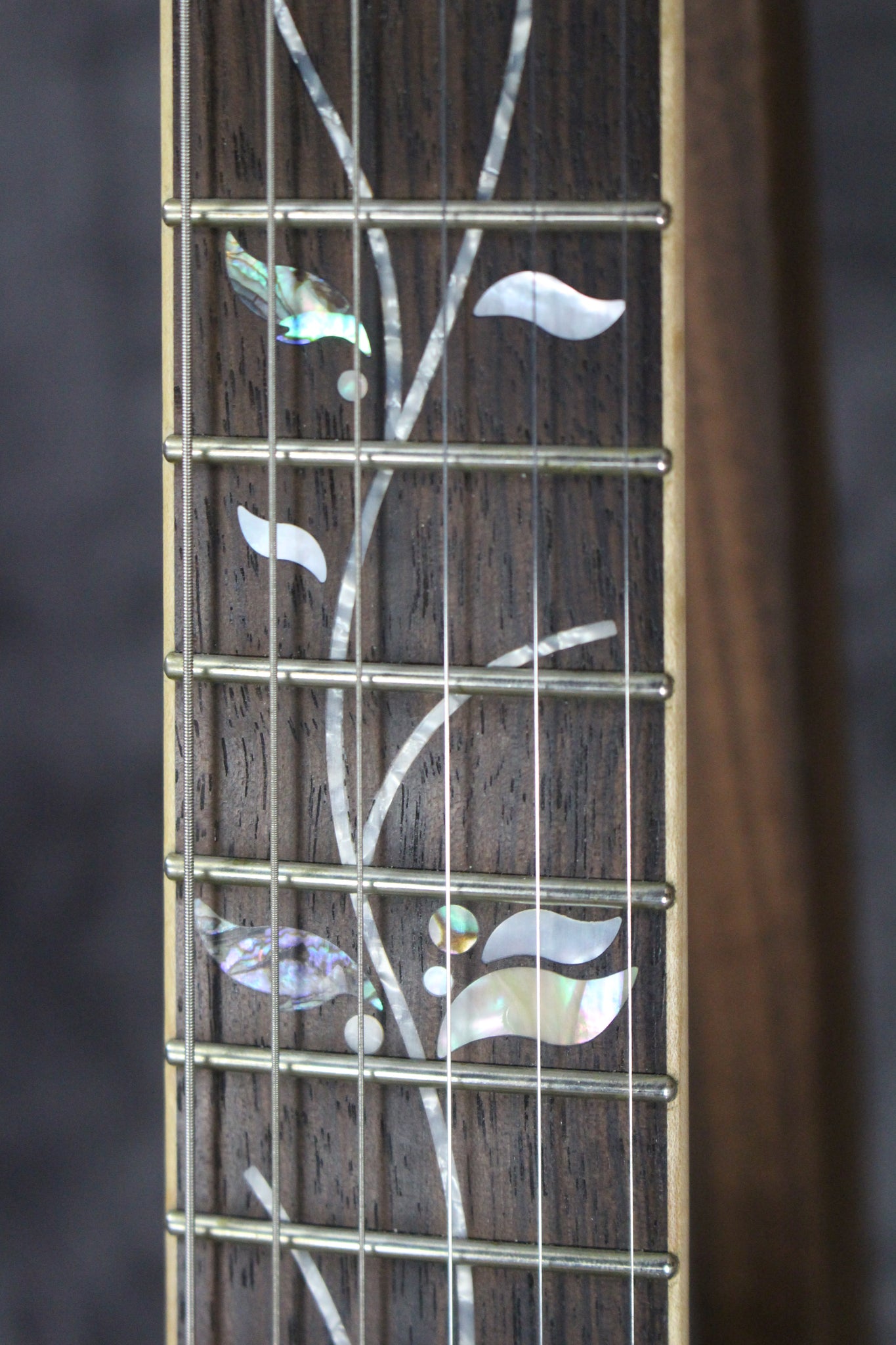 Neck: Maple/Wenge with a bound Ebony fingerboard, 25.5” scale length, 1.69” nut width, 24 frets, Tree of Life inlays.