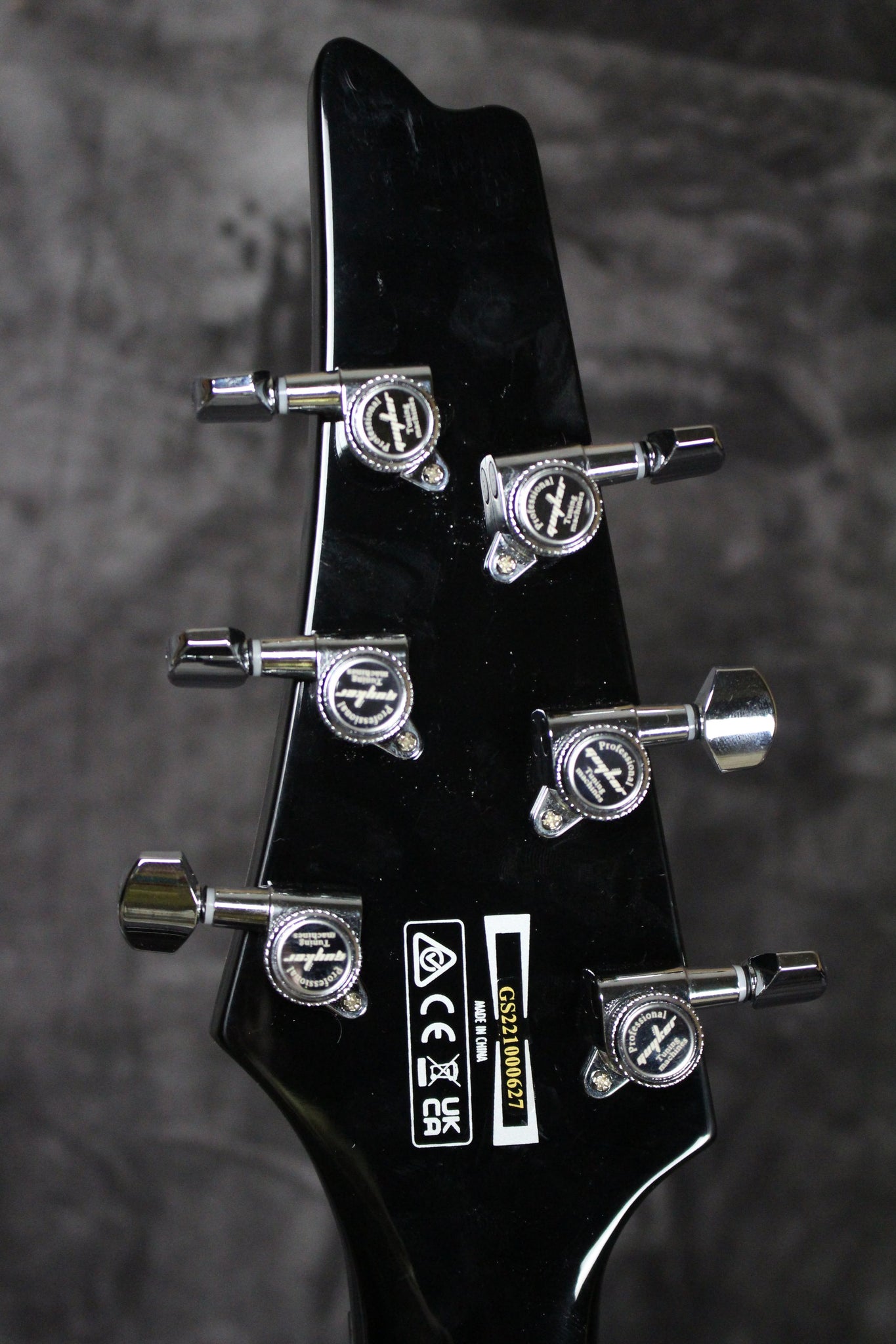 Summary: This Paul Stanley PS60 from Ibanez is in excellent condition and plays very. It has been set up by our in-house technician. It has light surface scratches on the back of the body and the sparkle finish changes colors depending on the direction of the guitar. It comes equipped with two hot humbuckers and a mirror pickguard.