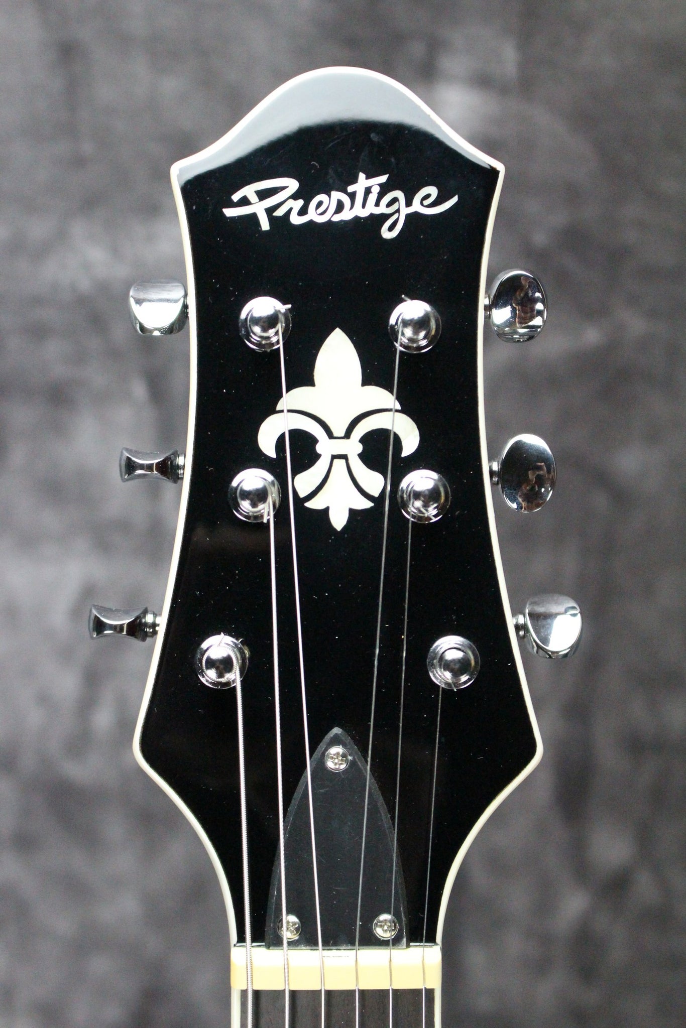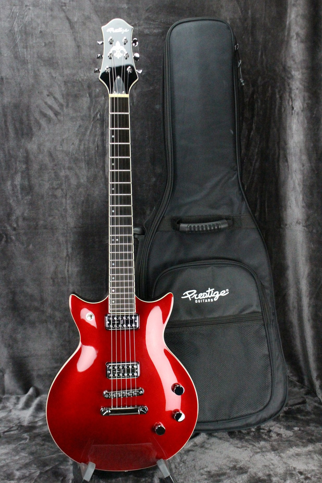 Summary: The Prestige DC Coupe Series is the hot-rodded, double-cutaway counterpart to Prestige’s single cutaway solid body line. The DC Coupe “Deuce” is their double pickup model of the Coupe. The “Deuce” features a solid mahogany body, with 3/4” carved solid maple top and a double cutaway body shape. The entire Coupe Series has been given an infusion of rockabilly, rock-n-roll outlaw styling. To bring the hot rod styling full circle, they’ve decked the “Deuce” out with metallic red finish top, TV Jones Classic (neck) and Classic Plus (bridge) pickups, and all chrome hardware including a tun-o-matic style bridge and stop bar tailpiece, metal knurled volume/tone controls and 3-way toggle switch, and open-geared Grover tuners.