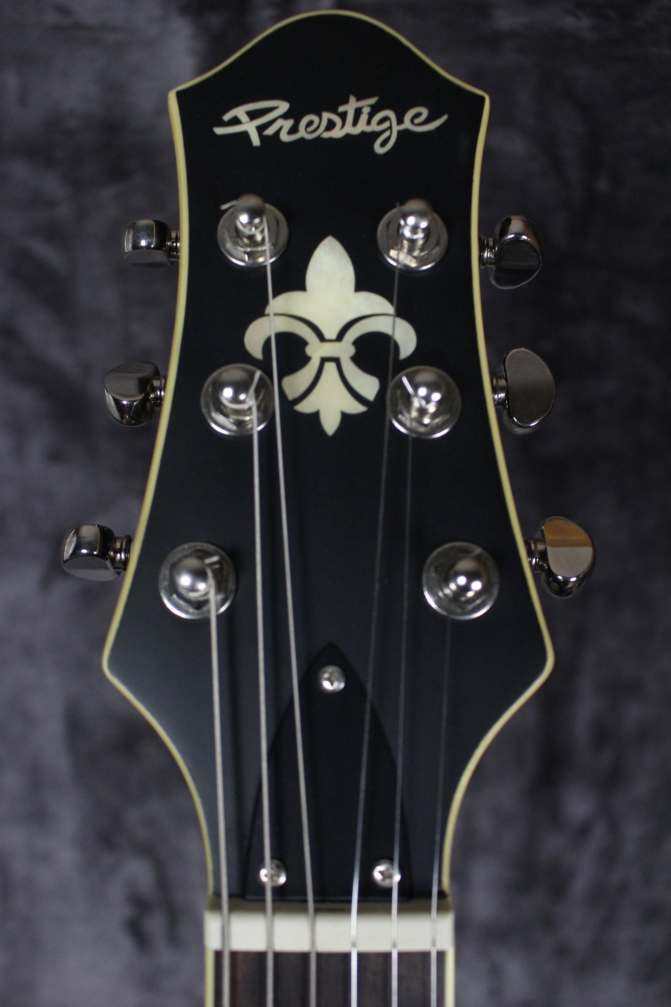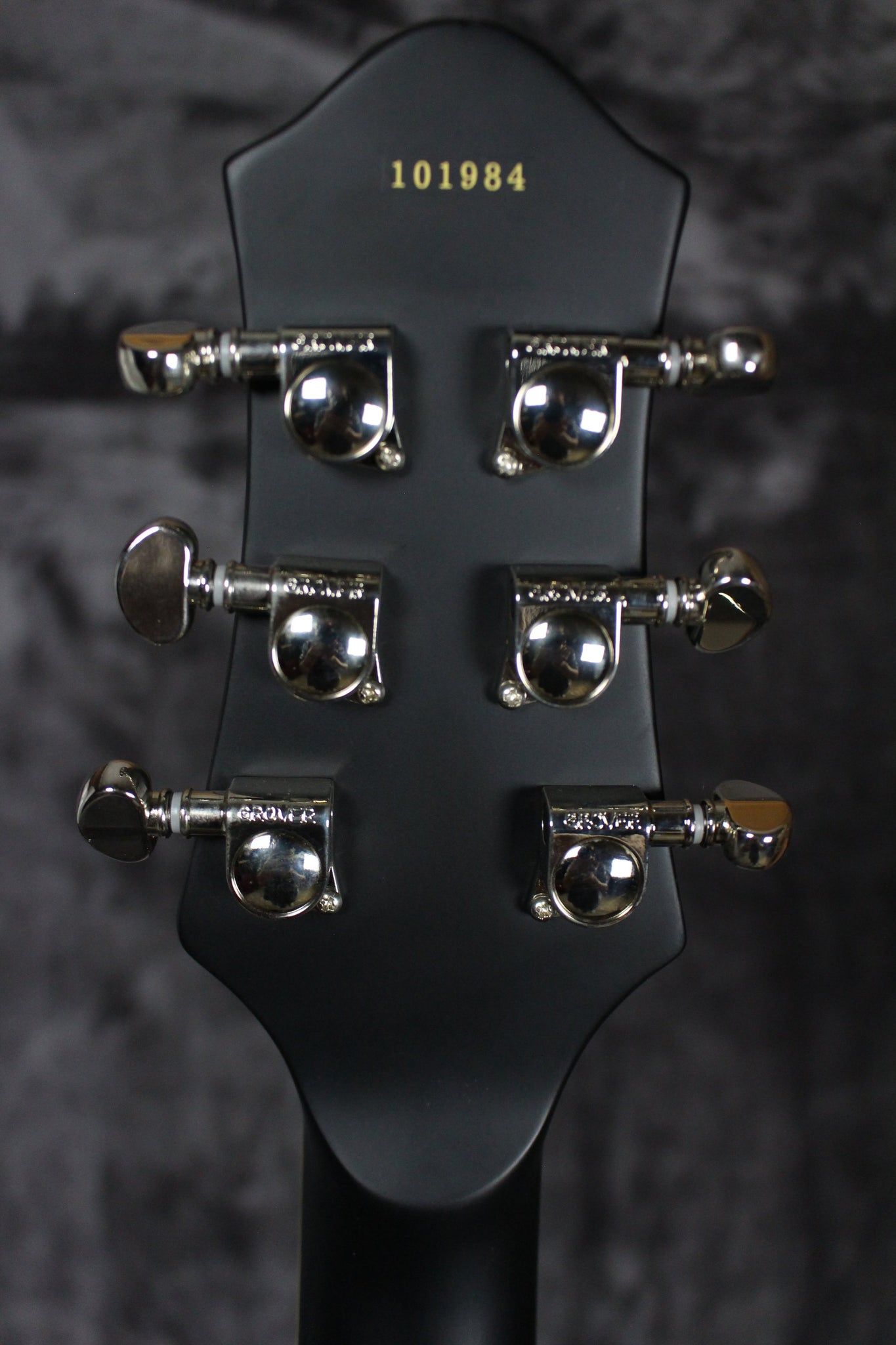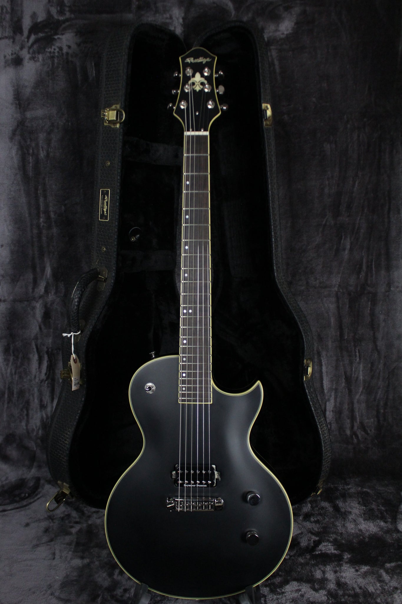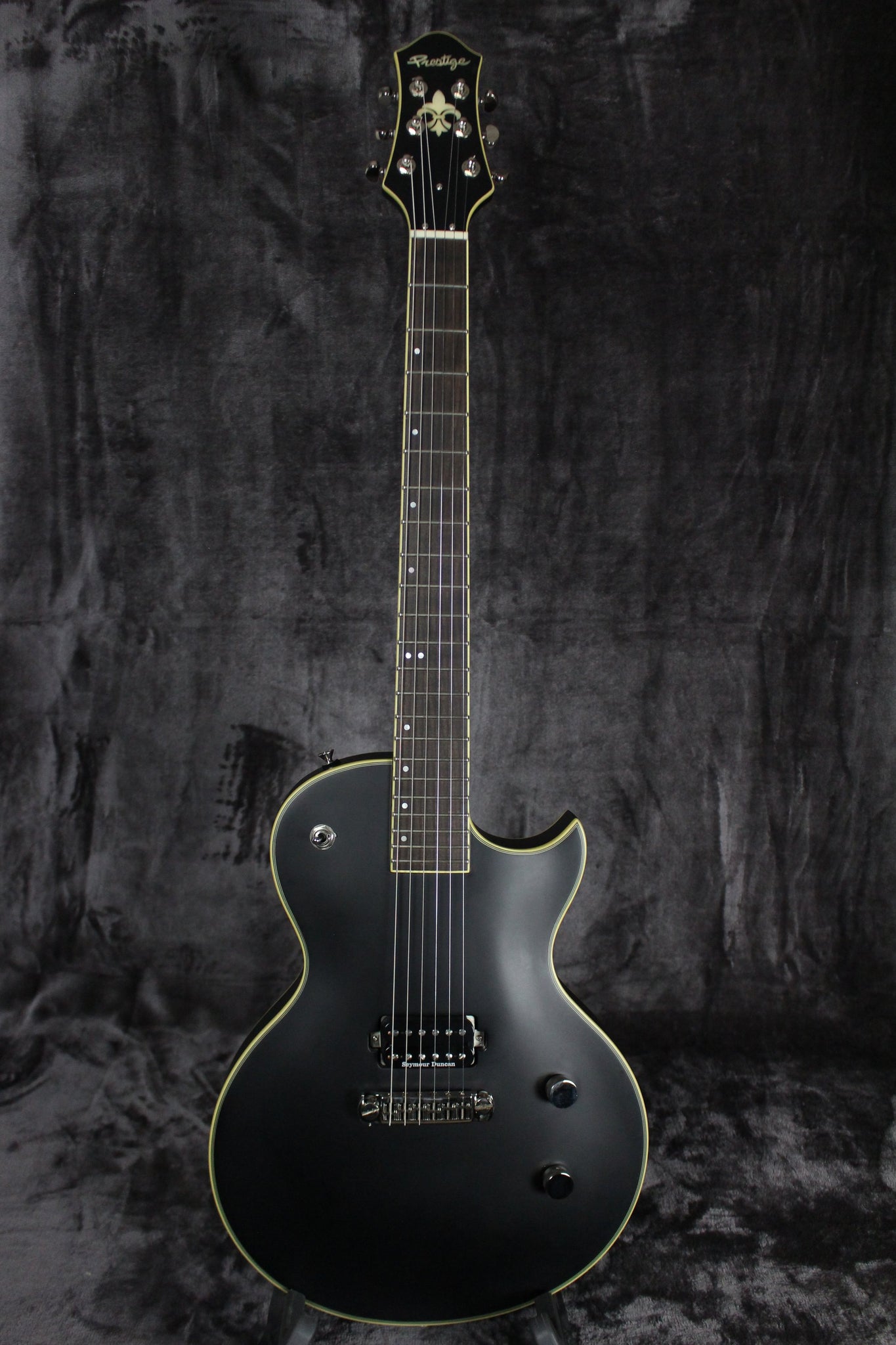 Body: Solid Mahogany with solid carved Maple top in Black satin finish.