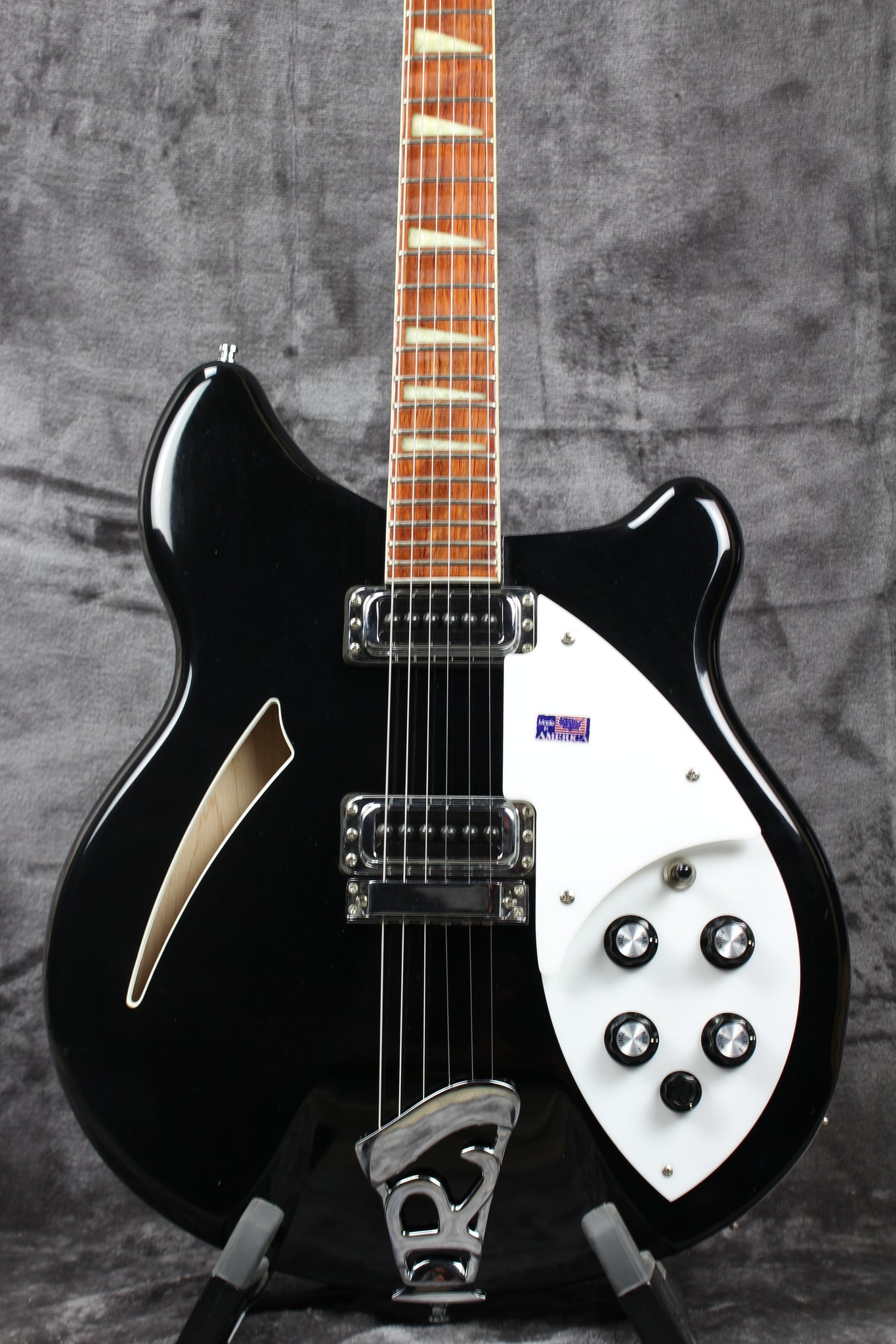 Summary: The Rickenbacker 360 Electric Guitar broke all the rules when it appeared amidst the British sound of the 1960s. Subtly updated through the years, this deluxe semi-hollow body with its special contour around the entire body perimeter is incredibly comfortable. The unique body shape and Bloodwood fingerboard inlaid with triangular pearloid markers offer rich, retro visuals. The maple neck has dual truss rods while single-coil pickups deliver everything from clean tone to biting overdrive.