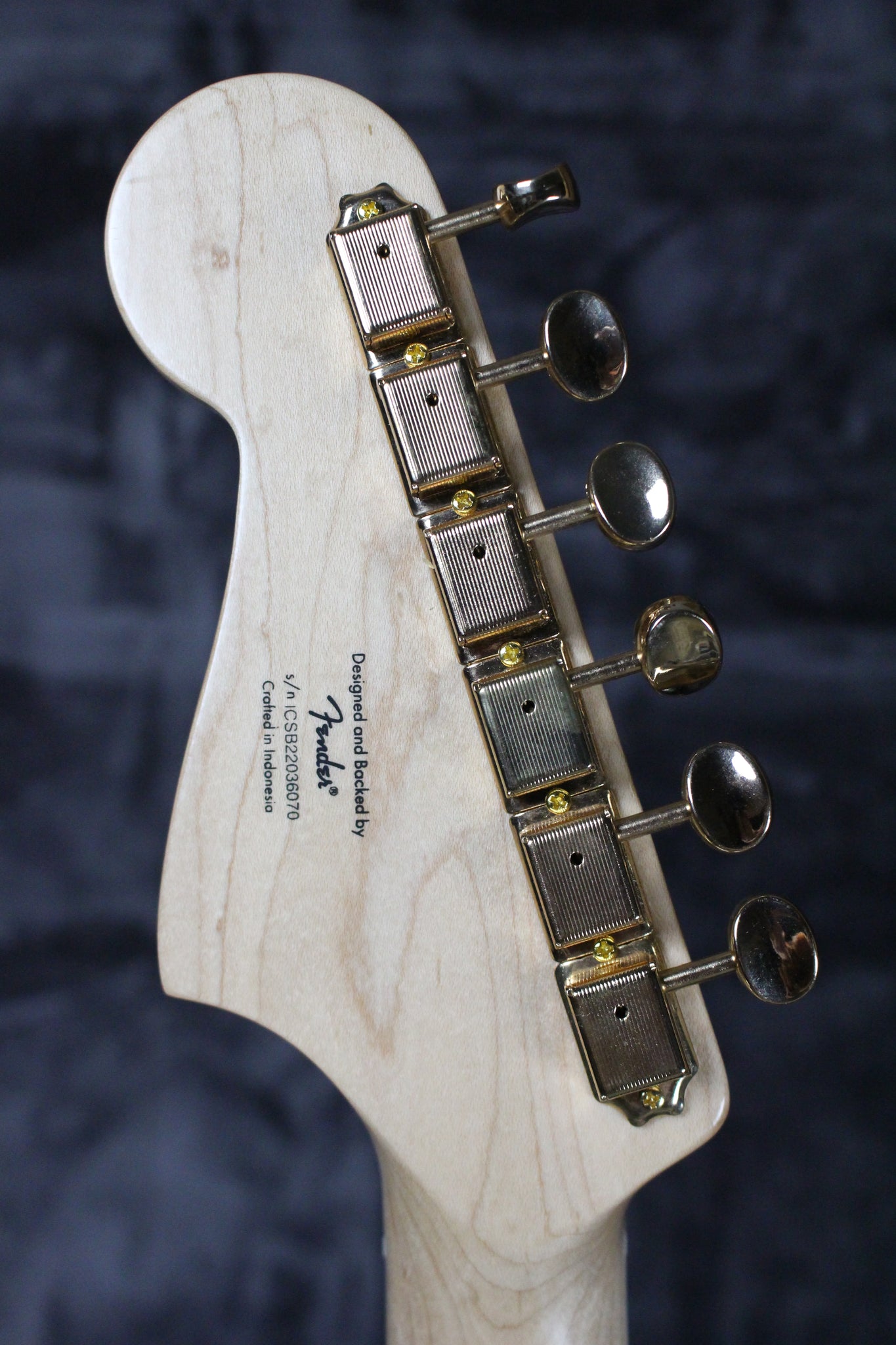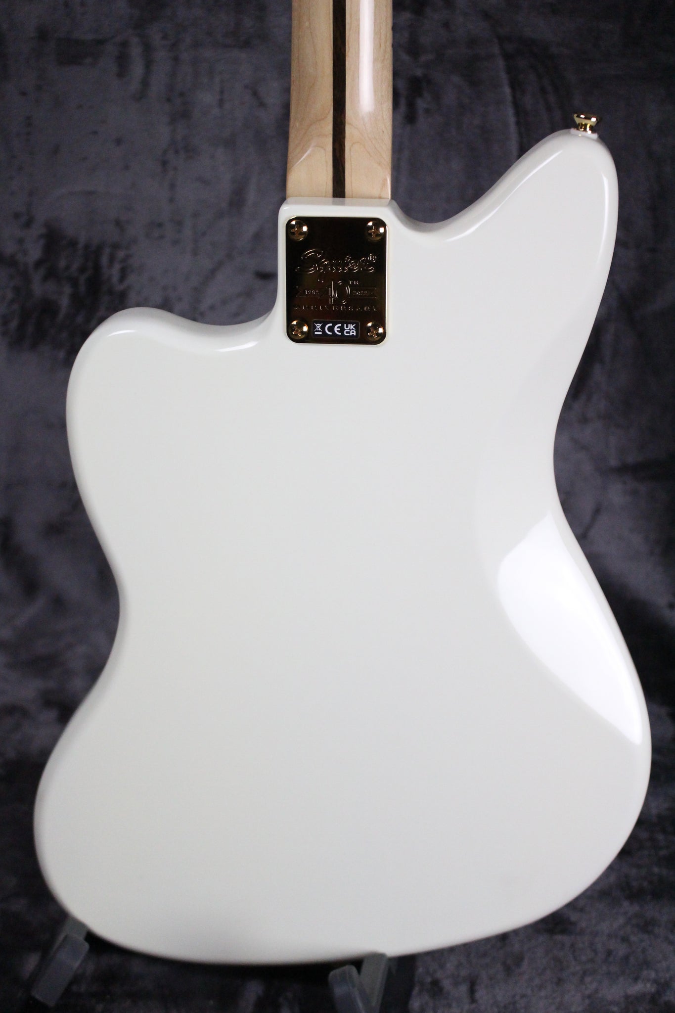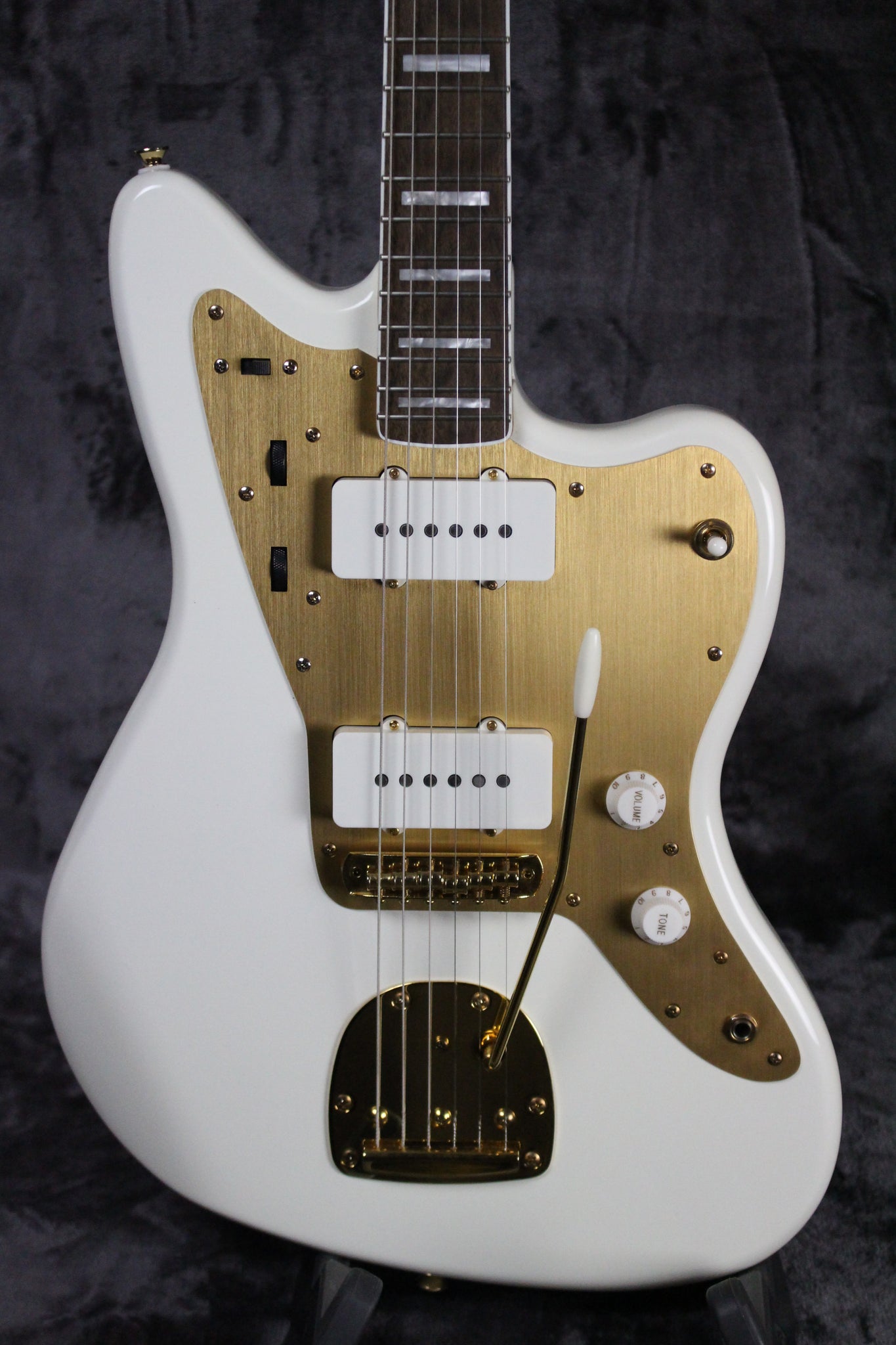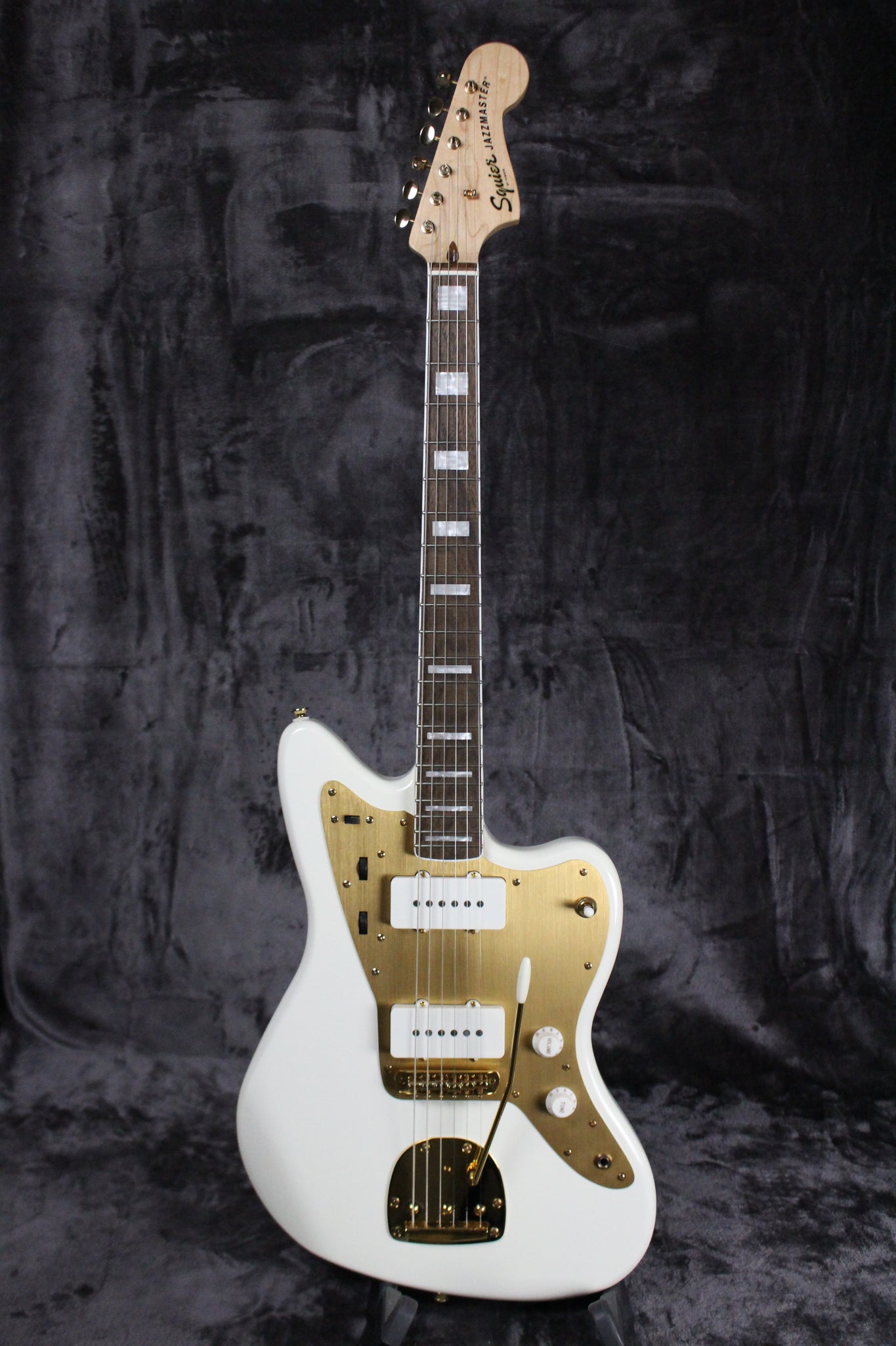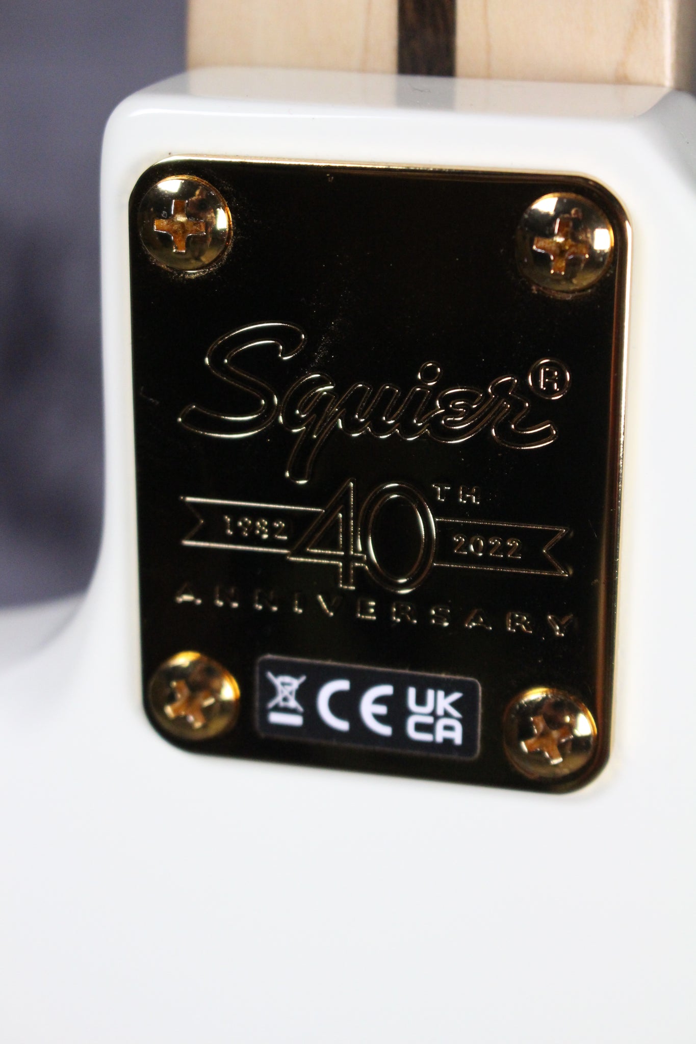 Summary: This 2022 Squier 40th Anniversary Jazzmaster Gold Edition is a stylish model adorned with an eye-catching collection of upscale features for the discerning Squier fanatic. Featuring striking gold-plated hardware, a gold anodized aluminum pickguard, a bound Indian laurel fingerboard with pearloid block inlays, an engraved anniversary neck plate and gloss finish throughout, this Jazzmaster is poised and ready for the spotlight. Player-friendly refinements of this commemorative model include a slim and comfortable "C"-shaped neck profile for an easy playing feel, vintage-style tuning machines and 6-saddle floating bridge and tremolo for authentic performance and style, and Fender-Designed single-coil pickups with alnico 5 magnets for familiar Jazzmaster tone.