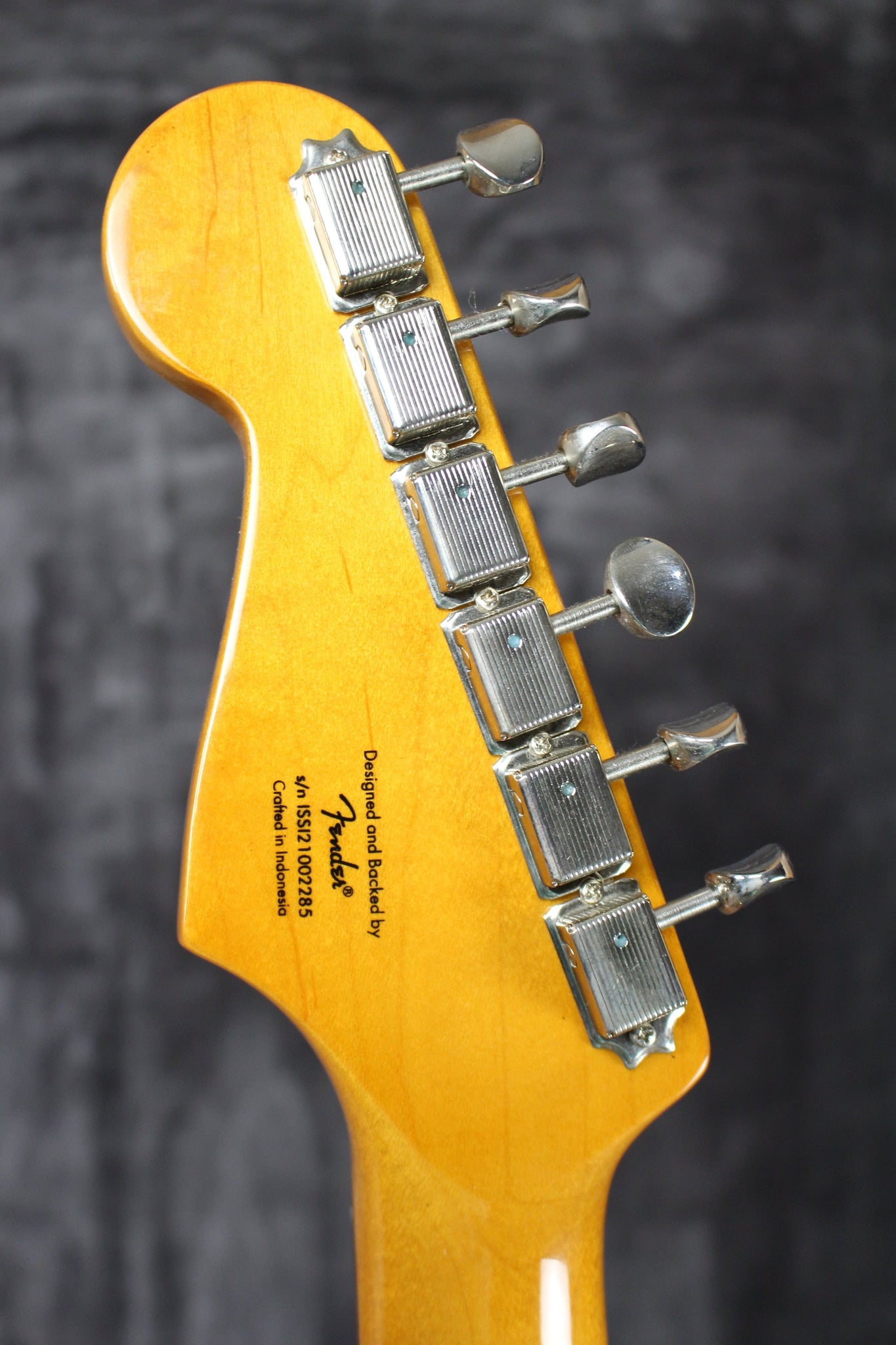 Pickups/Hardware: Fender Designed Alnico Single-Coil pickups, Vintage-Style tuning keys, 6-Saddle Vintage-Style Synchronized Tremolo bridge, Aged White Plastic knobs, bone nut.