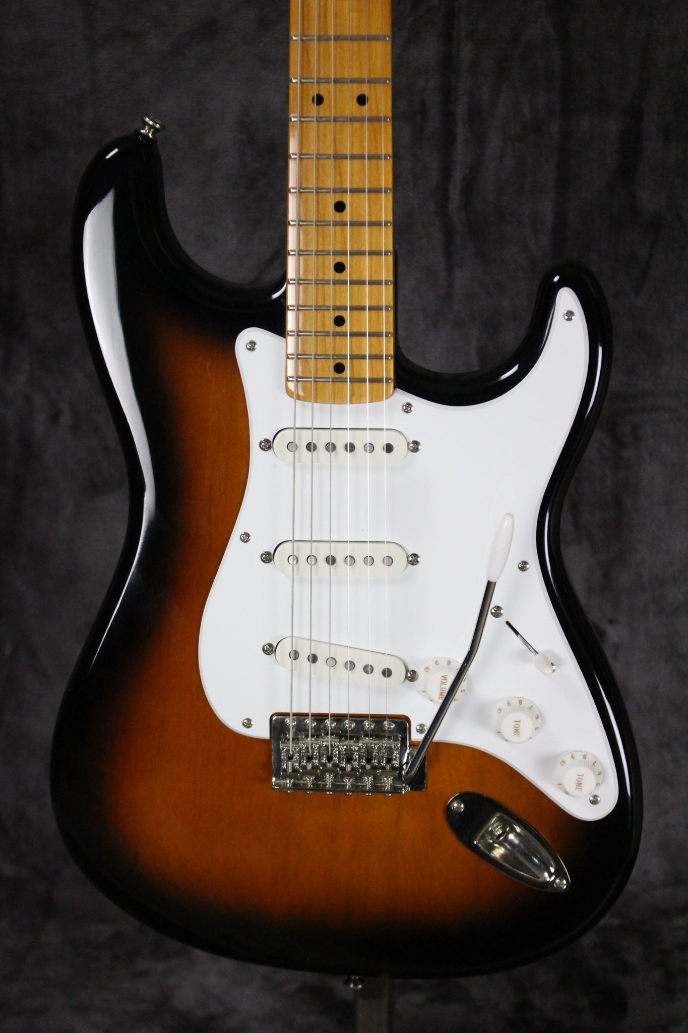 Pickups/Hardware: Fender Designed Alnico Single-Coil pickups,vintage style tuning keys, 6 saddle vintage style synchronized tremolo bridge, white plastic knobs, bone nut.