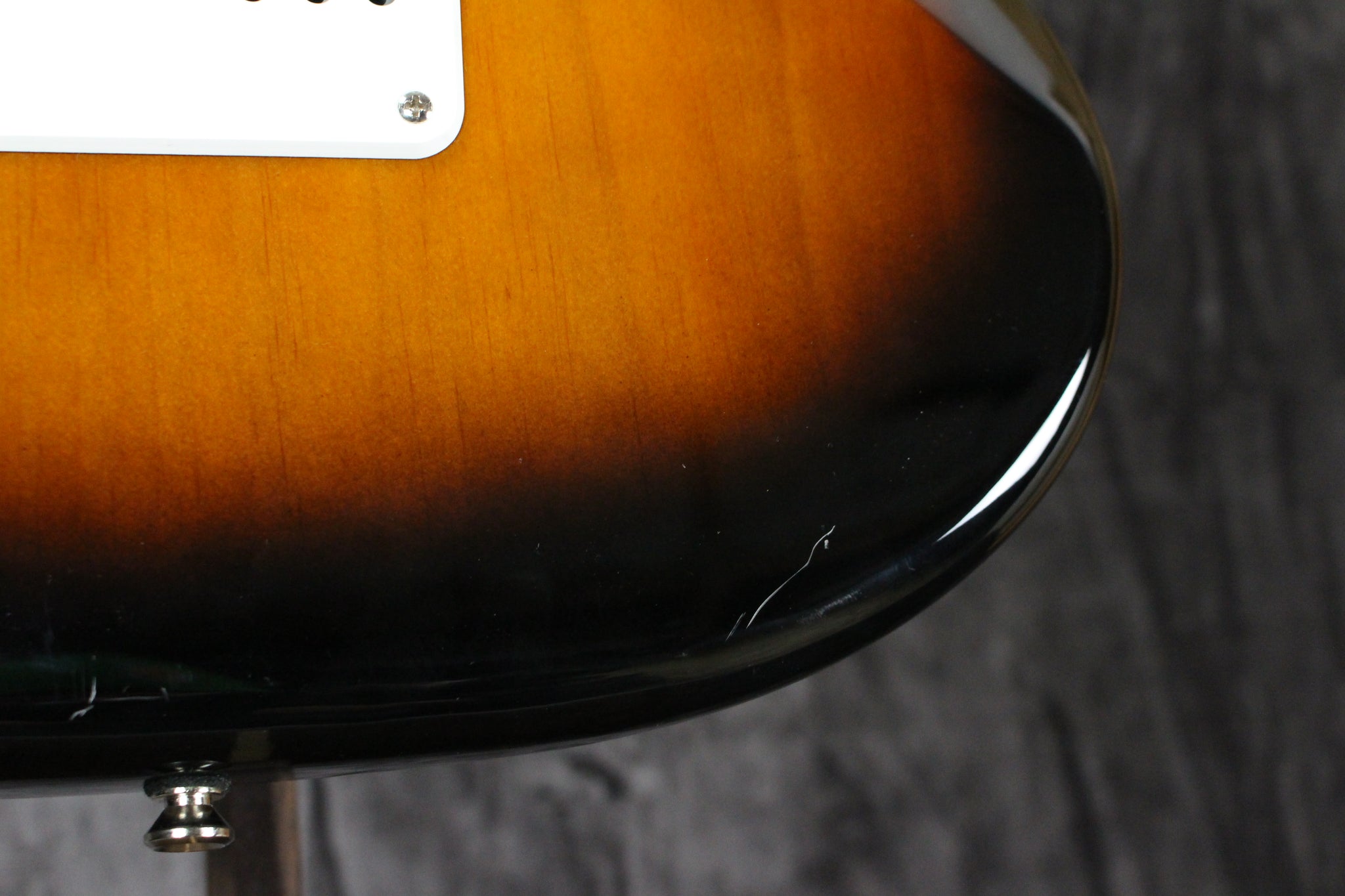 Cosmetics: This guitar is in great shape. It has light surface scratches on the body, with a few hard scuff on the bottom edge of the lower bout. The back of the neck is clean, and the frets show minimal wear. The back has light buckle rash. Overall, this guitar plays very well and sounds fantastic.