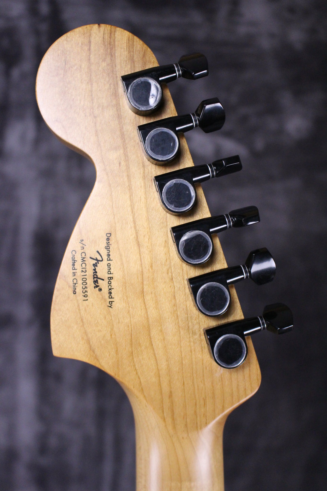 Pickups/Hardware: Squier SQR Alnico Single-Coil pickups, Sealed Die-Cast with Split Shafts tuning keys, Silver Anodized Pickguard,2-Point Synchronized Tremolo with Block Saddles, white plastic knobs, graphite nut.