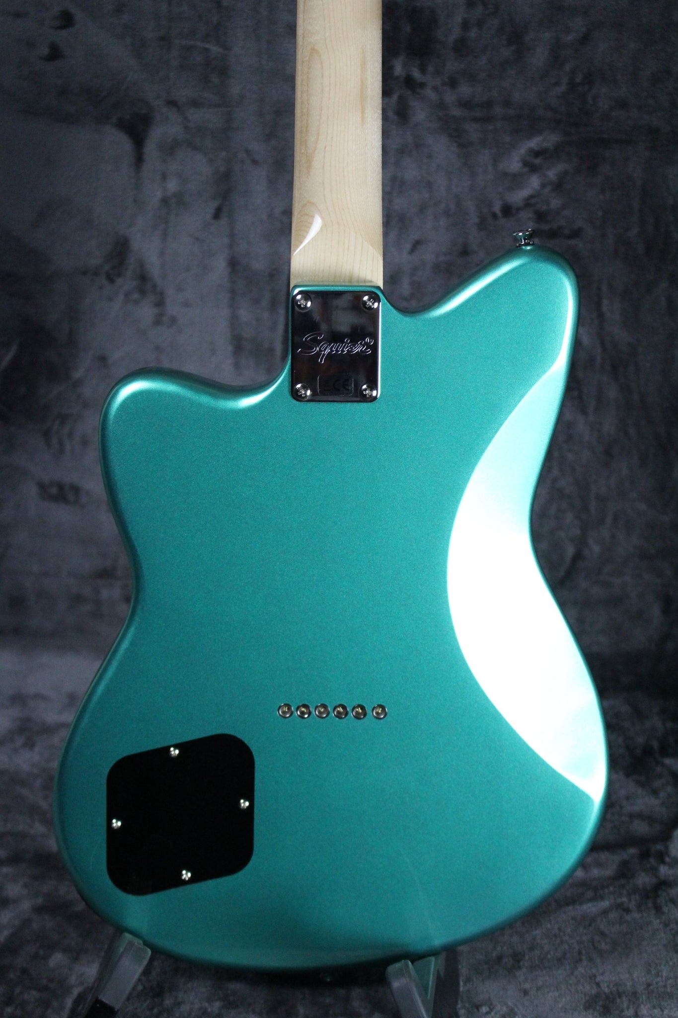 Summary: Originally introduced by Fender in 1998, the Toronado became a fresh face in the crowd of offset-style guitars with its unique curves and crushing tone. The Toronado delivers several player-friendly features including a slim “C” shaped neck with a slick gloss finish, a string-through-body bridge for solid string stability, individual volume and tone controls for a wide range of tonal variety, and an easy-playing 24.75” scale length.