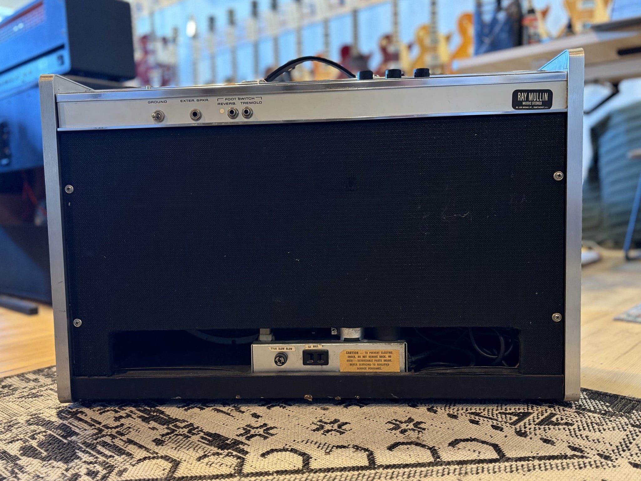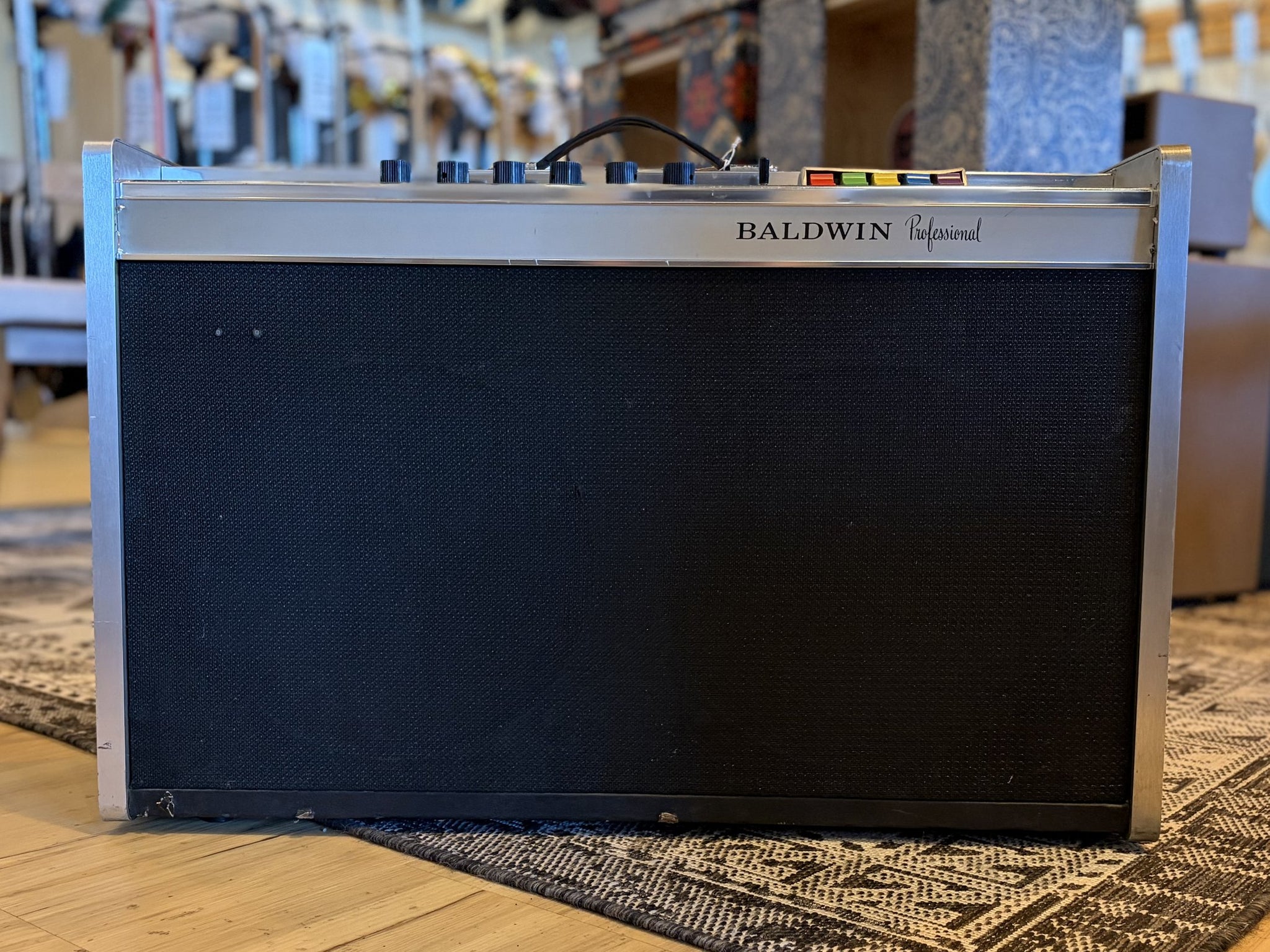This 60's Baldwin has been tested and works great. There are a ton of things that make this amp cool but our personal favorite is the "Supersound" tone circuit, controlled by a set of colorful, organ-style switches. This circuit basically switches between 4 EQ presets when the channel select is set to Supersound. This is a solid state, 2x12 amp, 2 channels with built in reverb and tremolo. We don’t ship used amps so if you want this one you’ll have to come in and play it first.