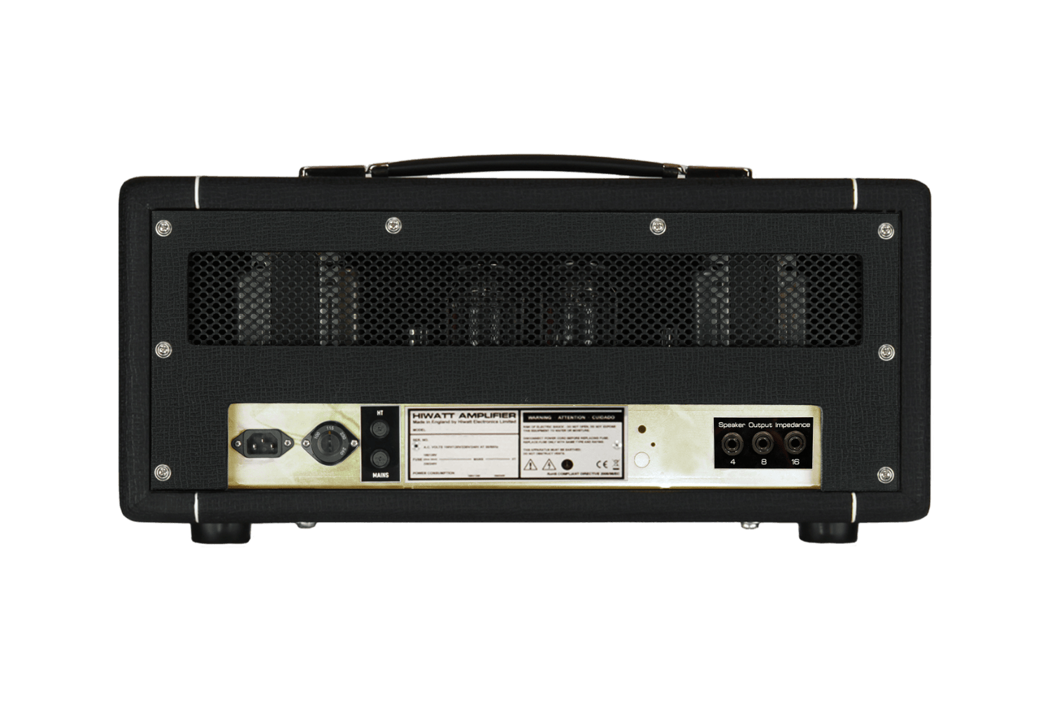 The legendary Hiwatt preamp circuit and tonestack found in the DR103/504 feeding a 20W (switchable to 0.5W) output section offers classic Hiwatt Headroom, clarity, instantaneous response, sonic depth, and detail, with breakup at recording and club volumes (switch to 0.5W in the greenroom).