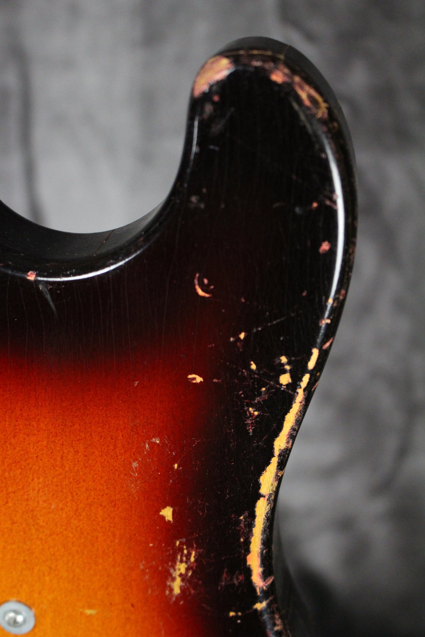 Cosmetics: This guitar is in good shape. It has surface scratches, scrapes, small indentations, crazing, on the body. The back of the neck is clean, and the frets show some wear. The back has true buckle rash. Overall, this guitar plays very well and sounds fantastic.