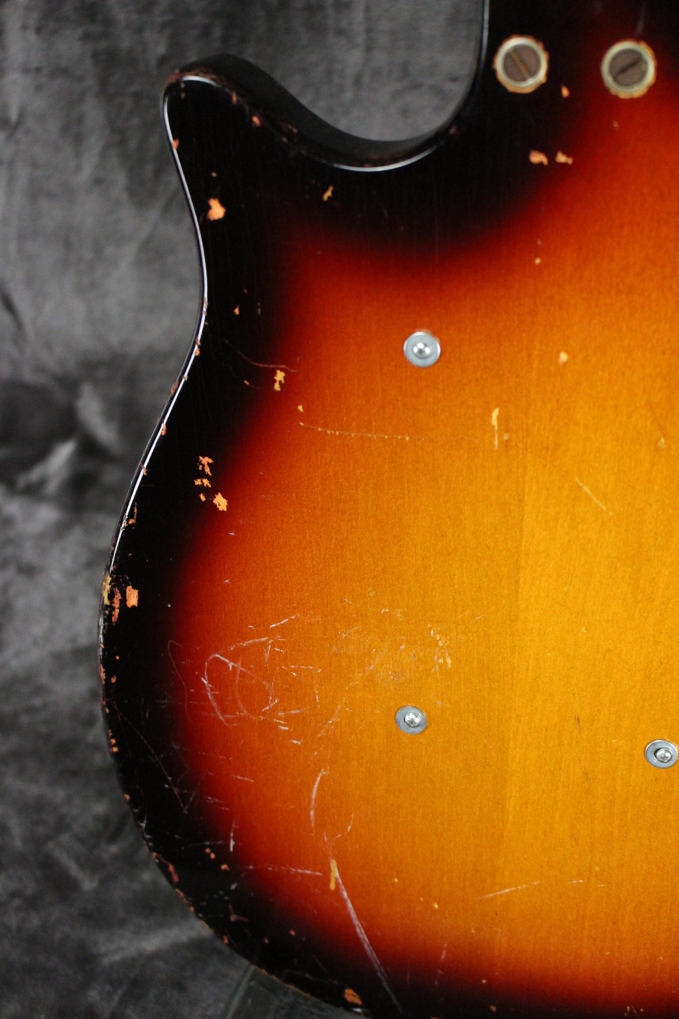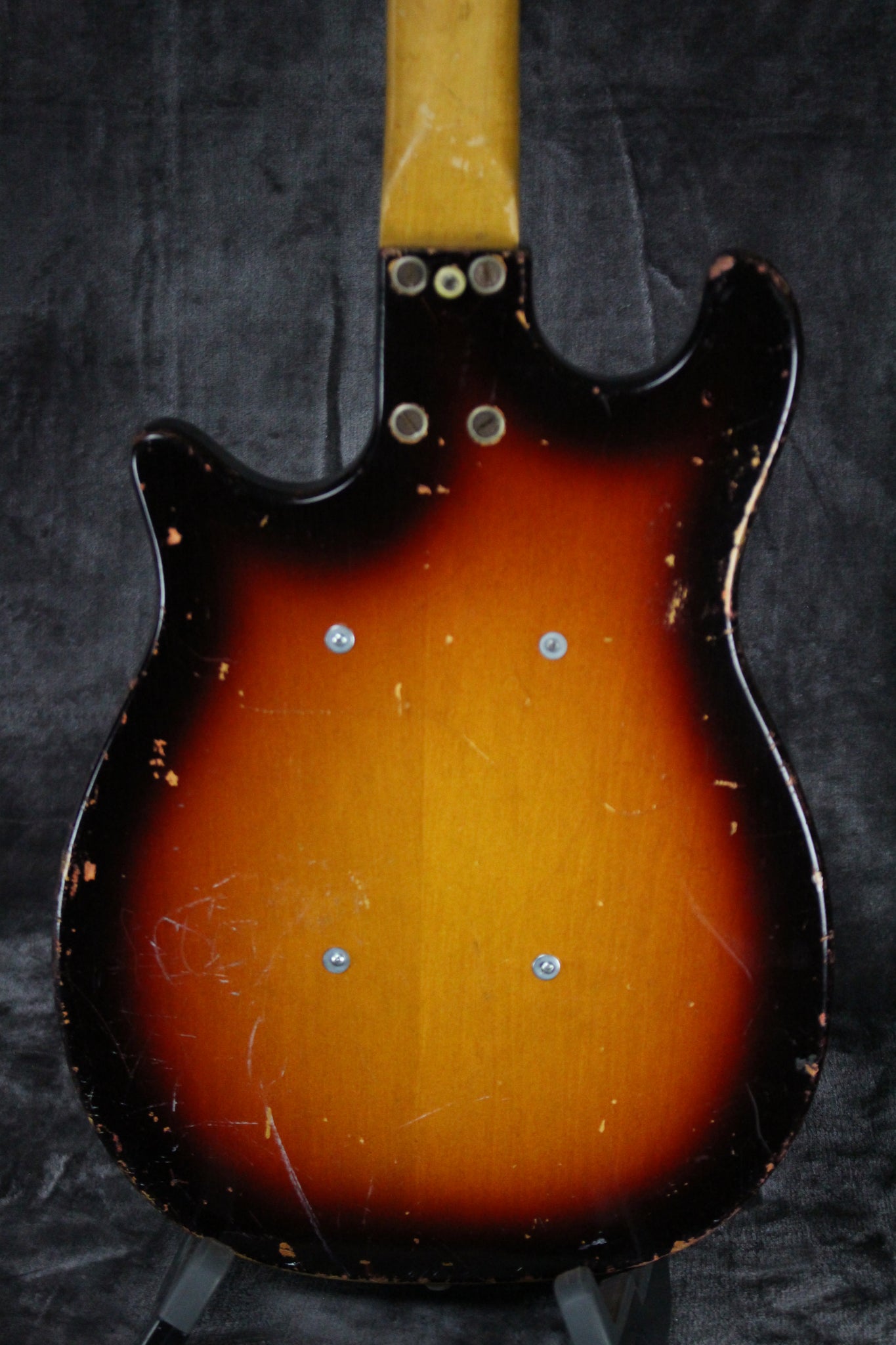 Pickups/Hardware: Replaced lipstick style pickups, open gear tuning keys, original 2 saddle bridge, plastic knobs, plastic nut.