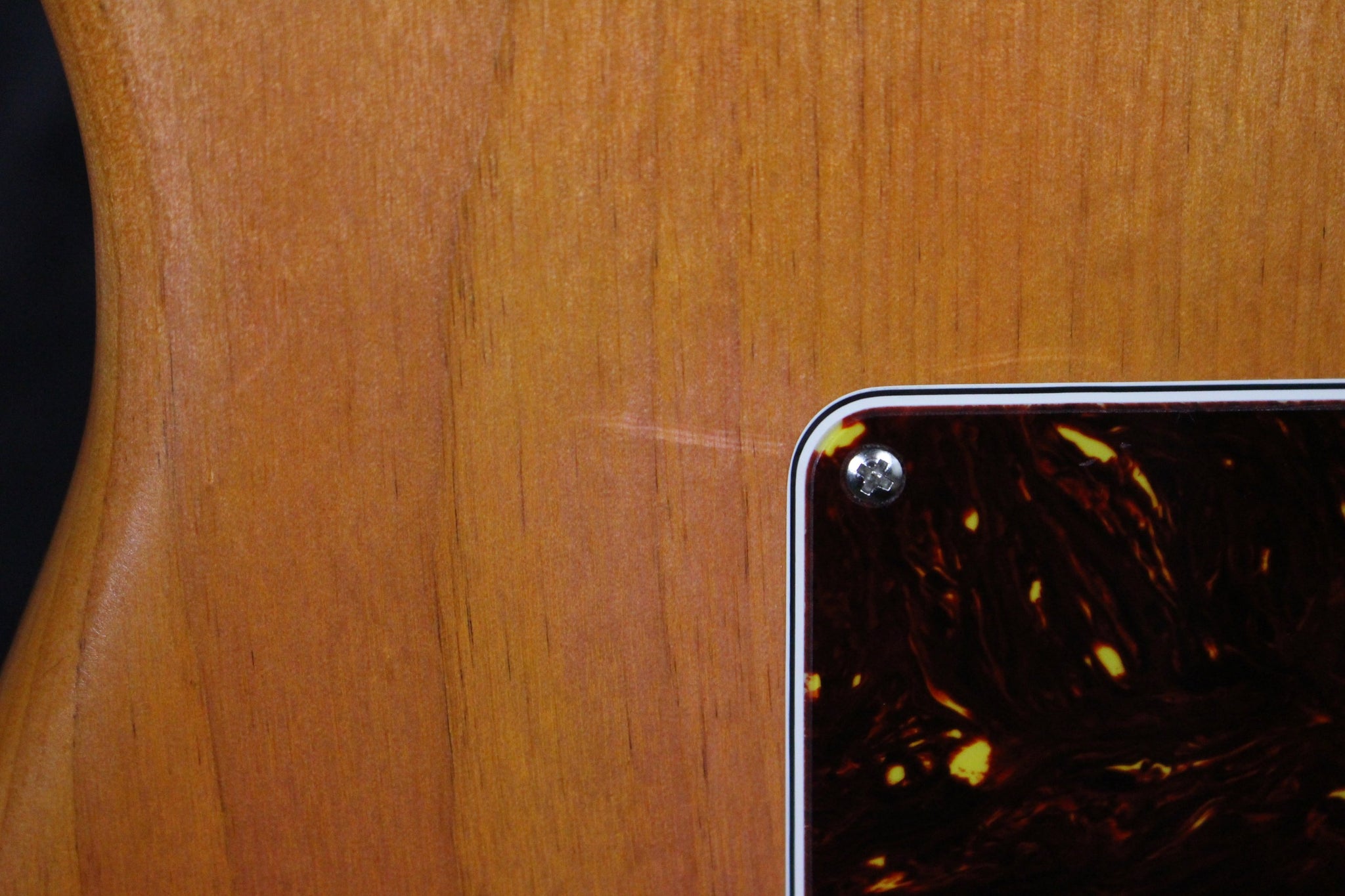 Cosmetics: This guitar is in good condition. It has light surface scratches on the top and back of the body. There are a few dings near the forearm area on the front of the guitar. The back of the neck is clean, and the frets show minimal wear. Overall, this guitar plays very well and sounds fantastic.