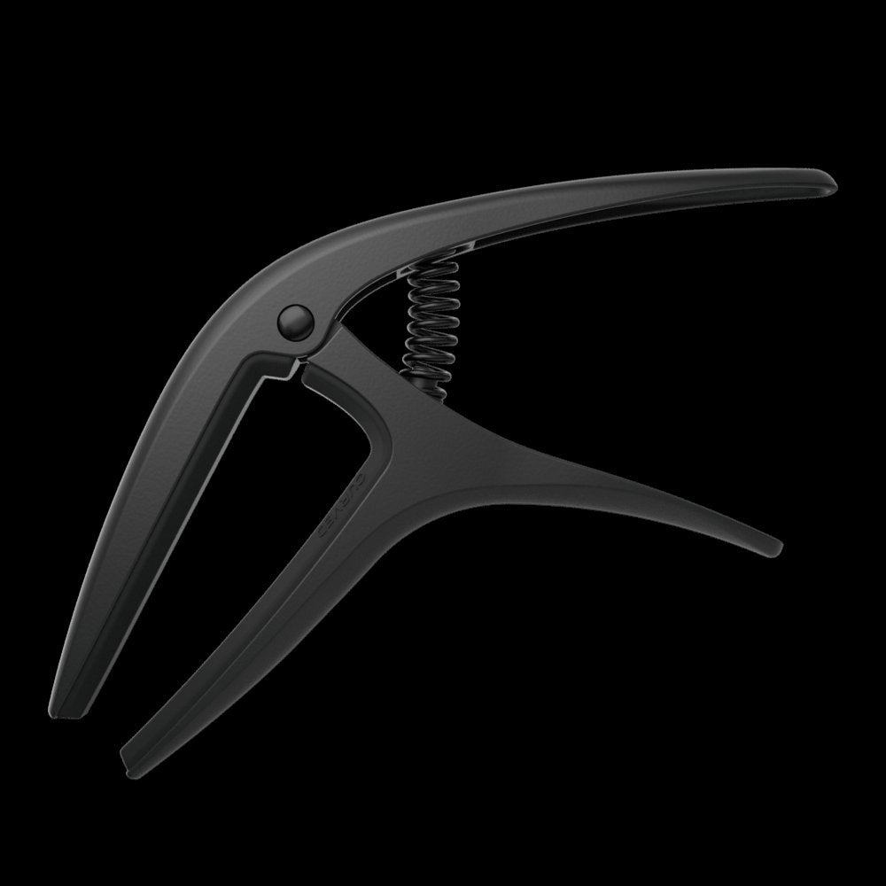 The Ernie Ball Axis Capo’s ergonomic features allow for fast and accurate single-handed key changes. Compatible with most electric and acoustic guitars, the Axis capo offers eight color finishes to match, with a dual-radius design that fits both flat and curved fretboards. Shift capo position single-handedly, and rely on buzz-free clamping pressure that lets your songs sing out in every key. Take the Axis Capo on the road and trust precision-molded rubber pads to protect your guitar finish. On the stage or in your writing space, it has to be the Axis Capo.