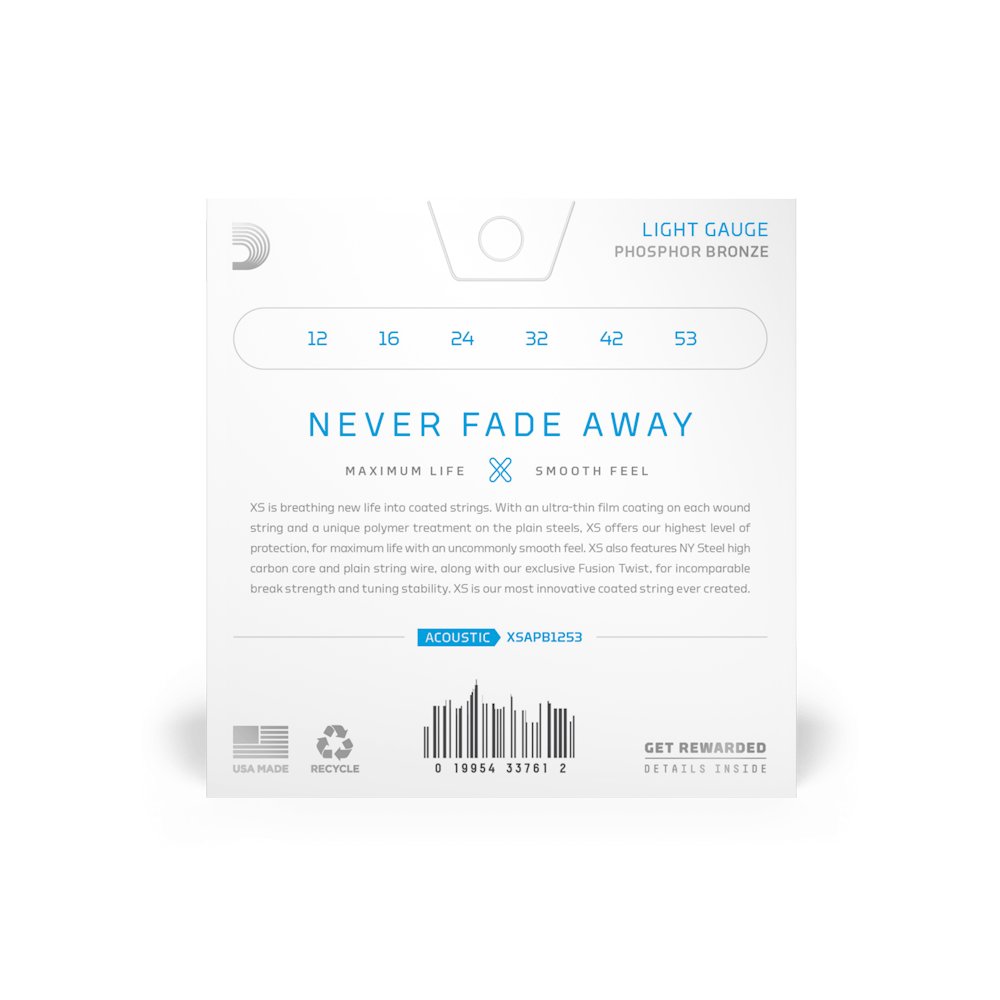 D'Addario XSAPB1253 Phosphor Bronze Light Coated Acoustic Guitar Strings