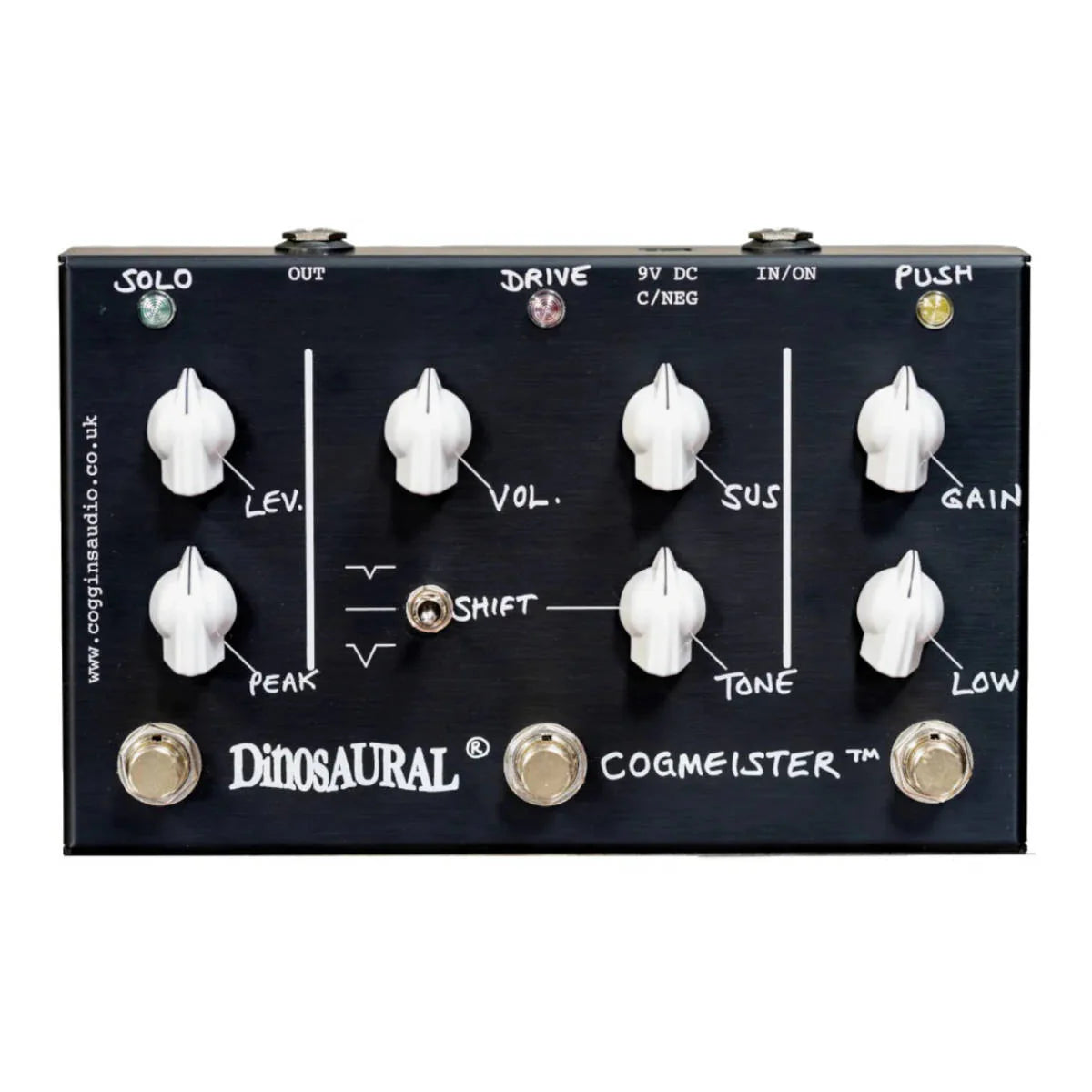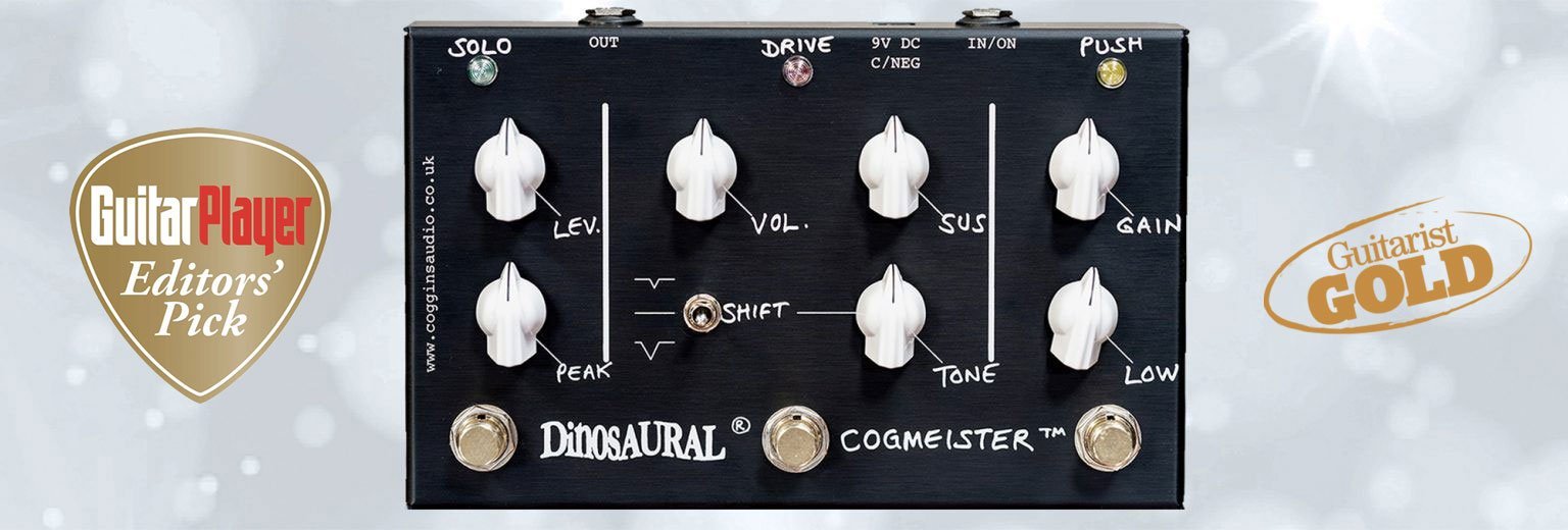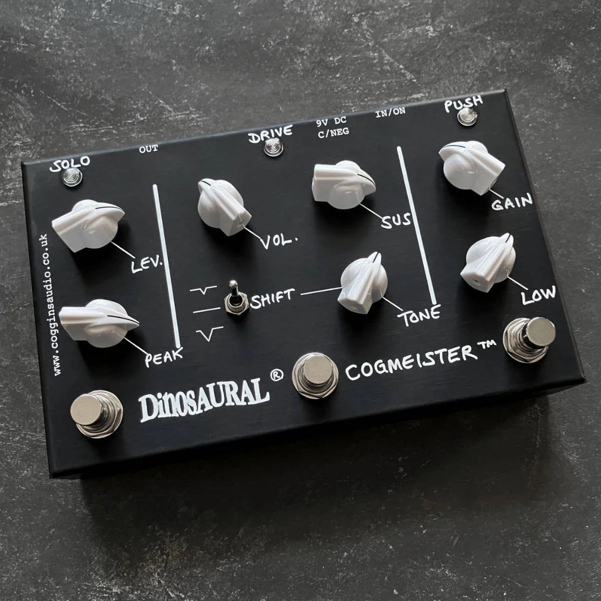 The Dinosaural Cogmeister pedal started as a crowdfunding project, with long time UK guitar pedal guru Dan Coggins of Coggins Audio, and former co-founder of Lovetone effect pedals. Demand quickly grew, and with the help of ThorpyFX, Cogmeister is now produced in commercial production facilities.