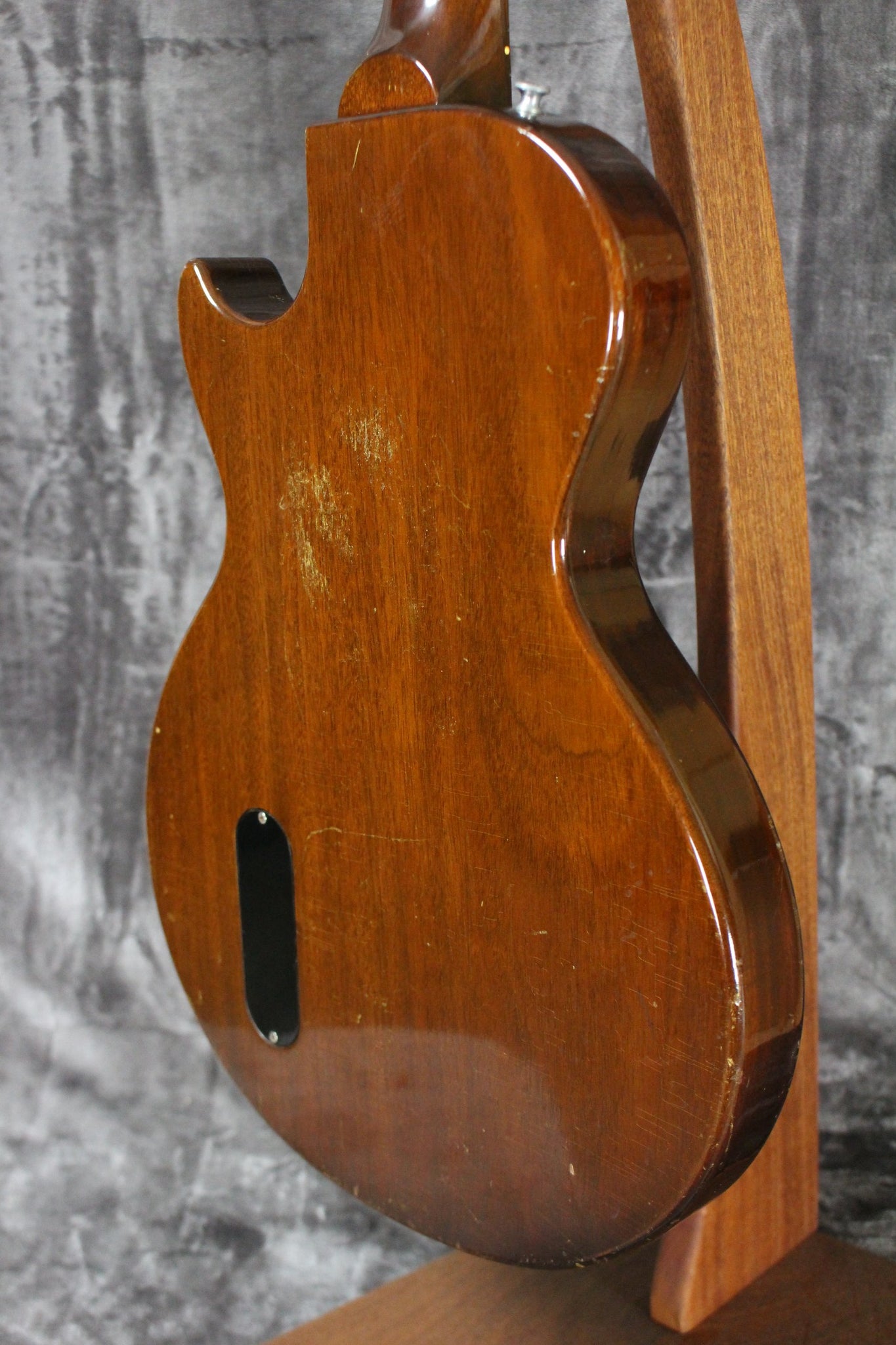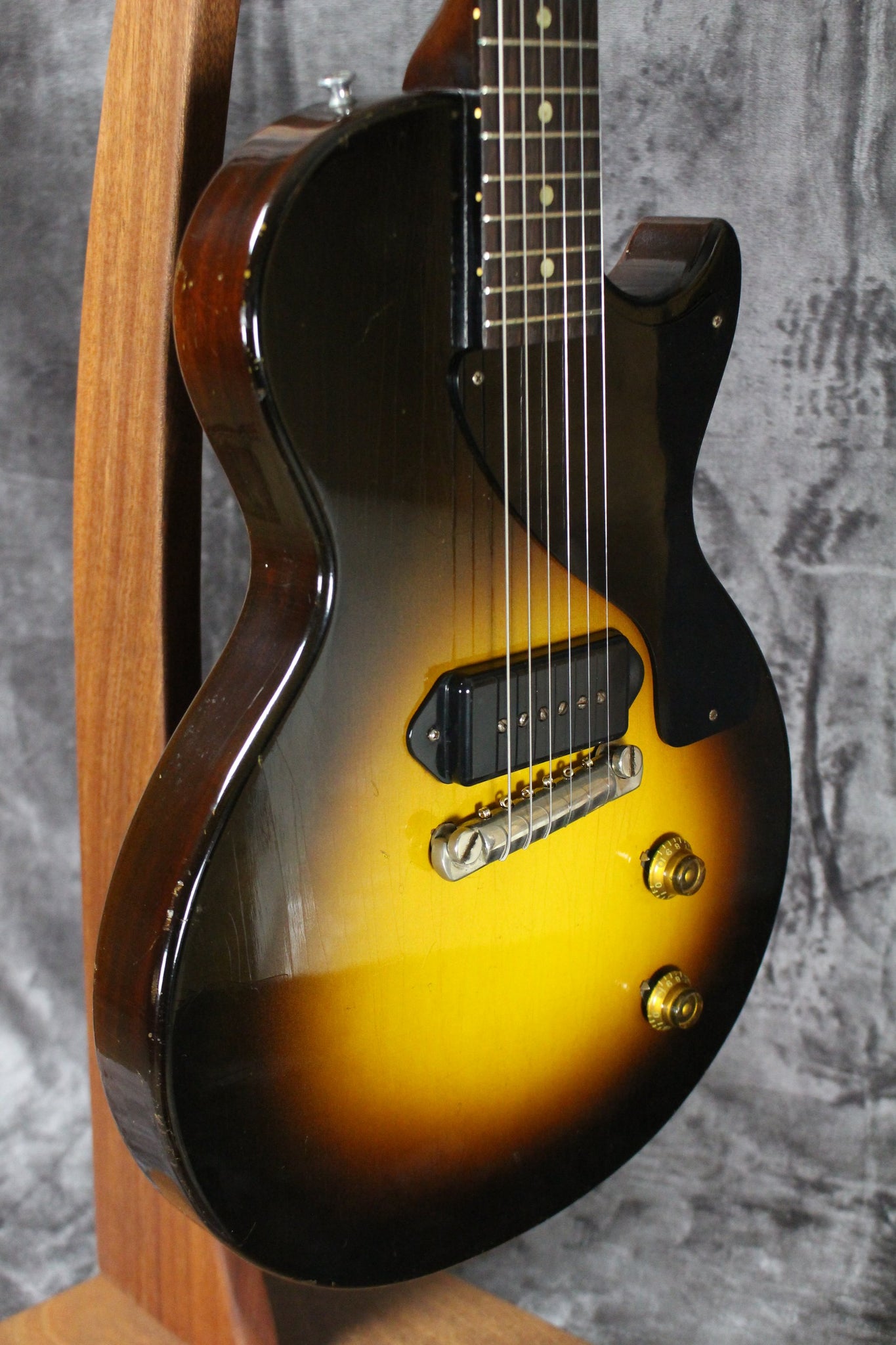 This 1956 Gibson Les Paul Junior is a prime example of why single P90 rock machines have remained so beloved. With its Mahogany body and set Mahogany neck, this Junior resonates beautifully, delivering the raw, dynamic tone that defines the model. The original dog-ear P-90 pickup provides punchy mids, clear highs, and a growling low end that excels in everything from warm cleans to aggressive overdrive. The simple yet effective wraparound bridge ensures excellent sustain and a lively response. The classic ’50s neck profile offers a comfortable, substantial feel, making it a joy to play.