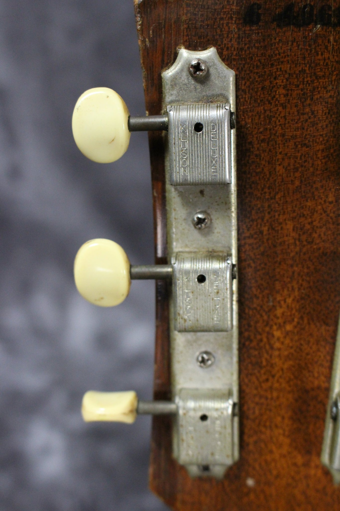Cosmetics: This guitar is in good shape. It has light surface scratches on the body, dings, crazing and all the honest wear a 69 year old instrument can earn. Overall, this guitar plays very well and sounds fantastic.