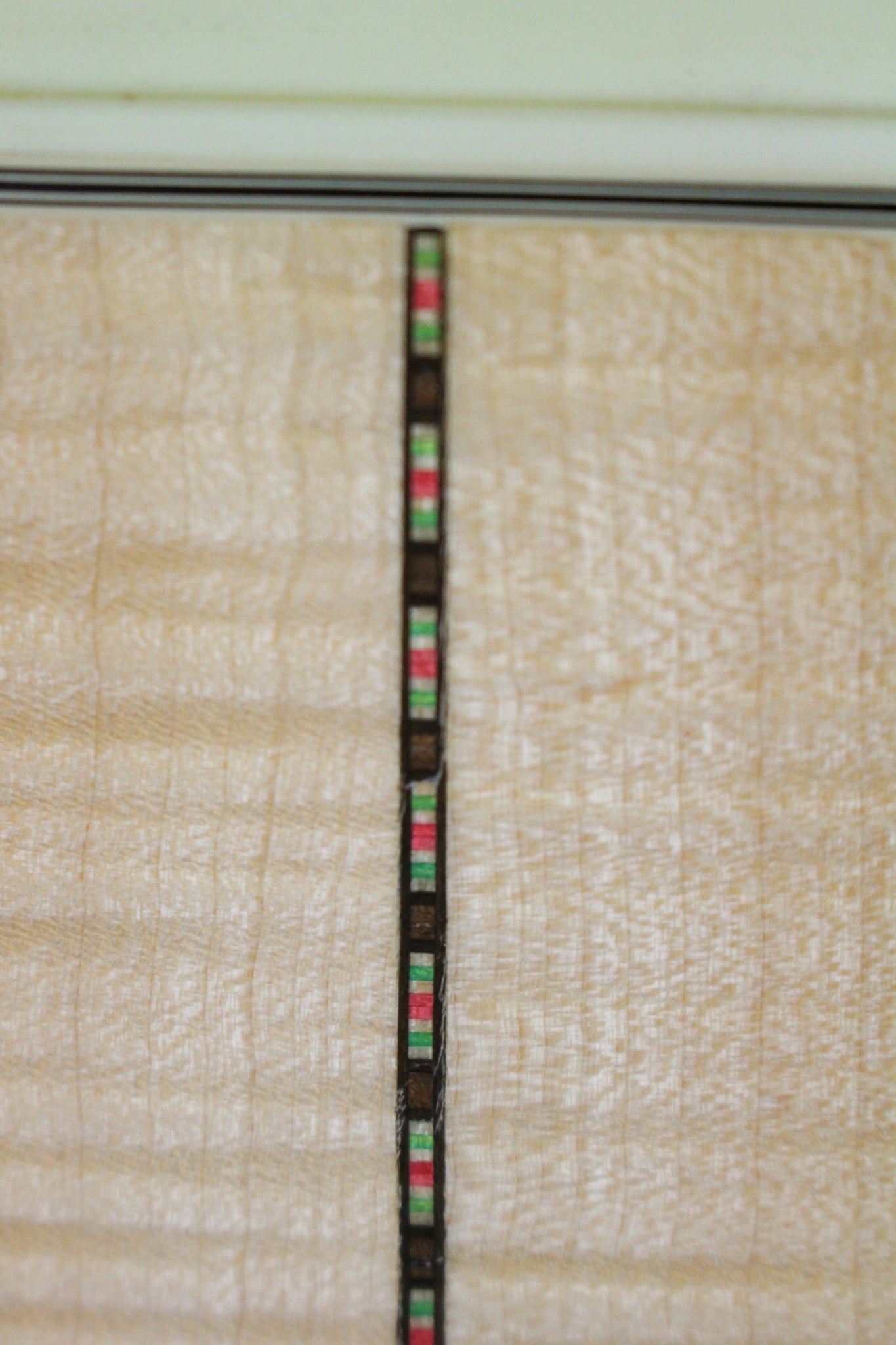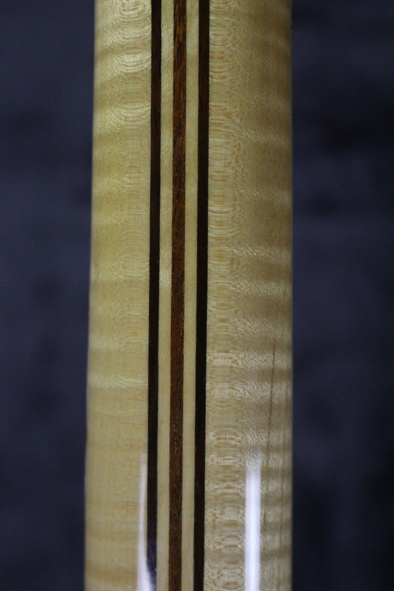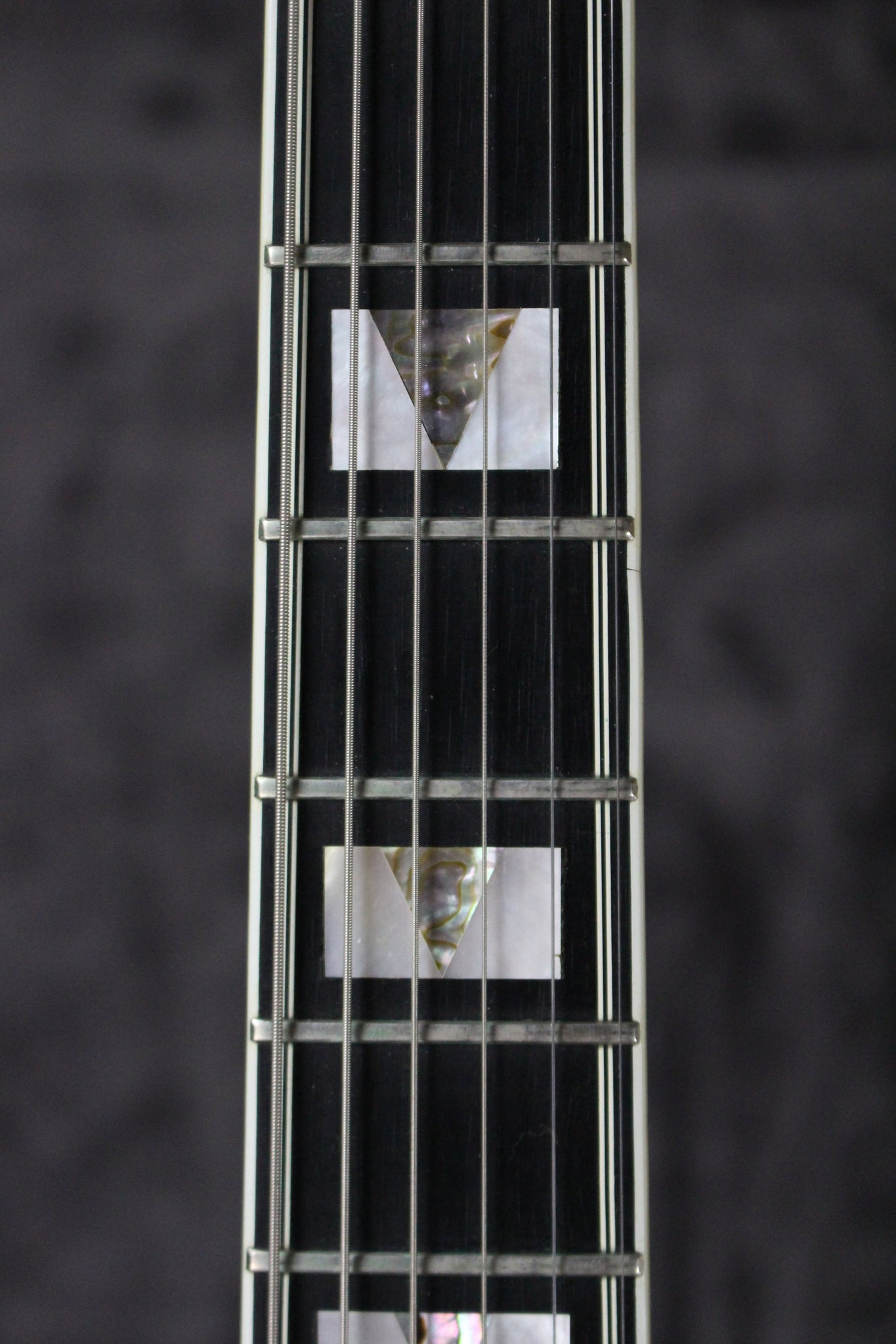Neck: Maple with a Ebony fingerboard, 25.5” scale length, 1.69” nut width, (21mm deep at 1st fret, 53mm wide at the 12th fret), 20 frets, Mother of pearl and abalone inlays.