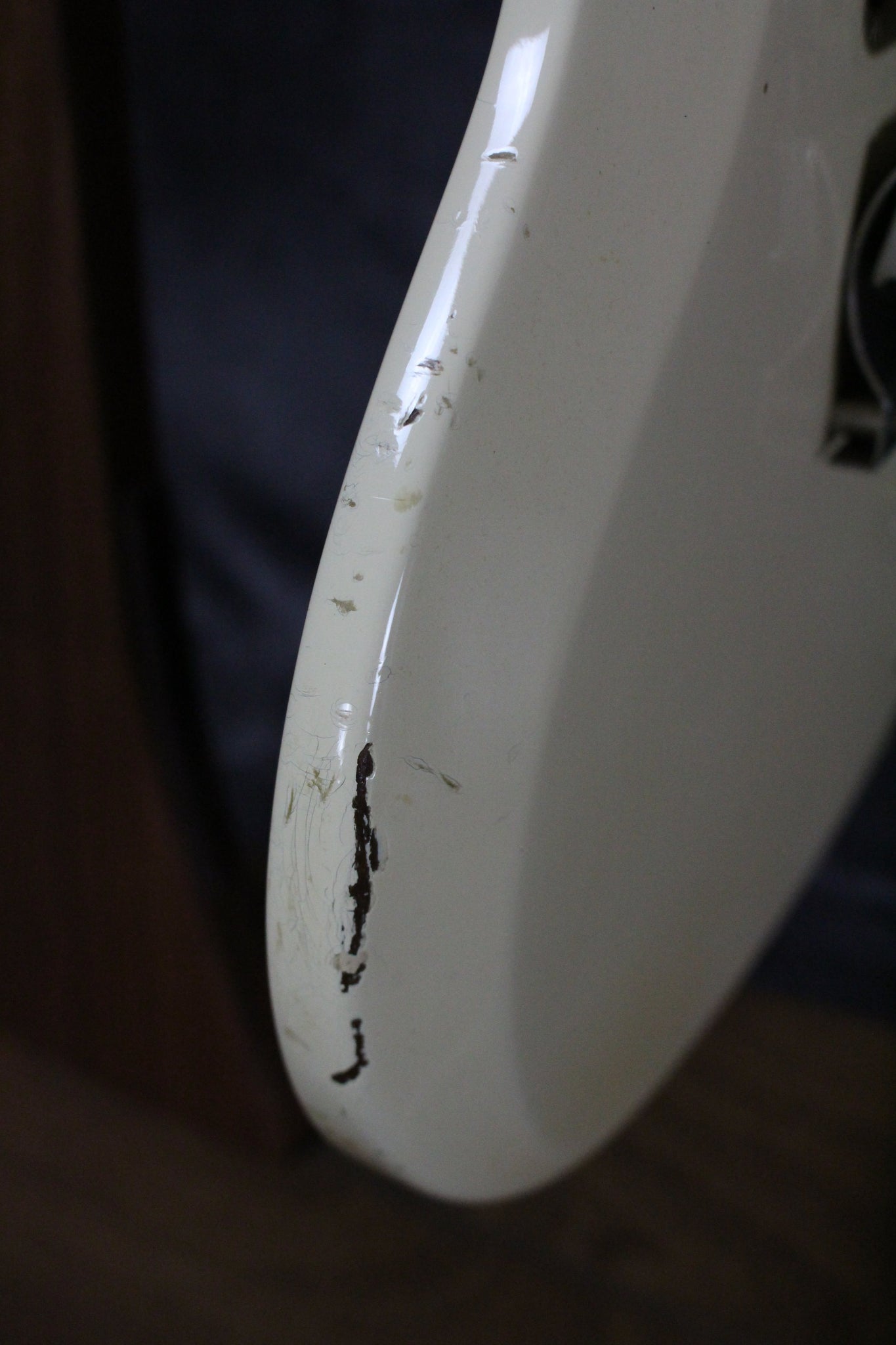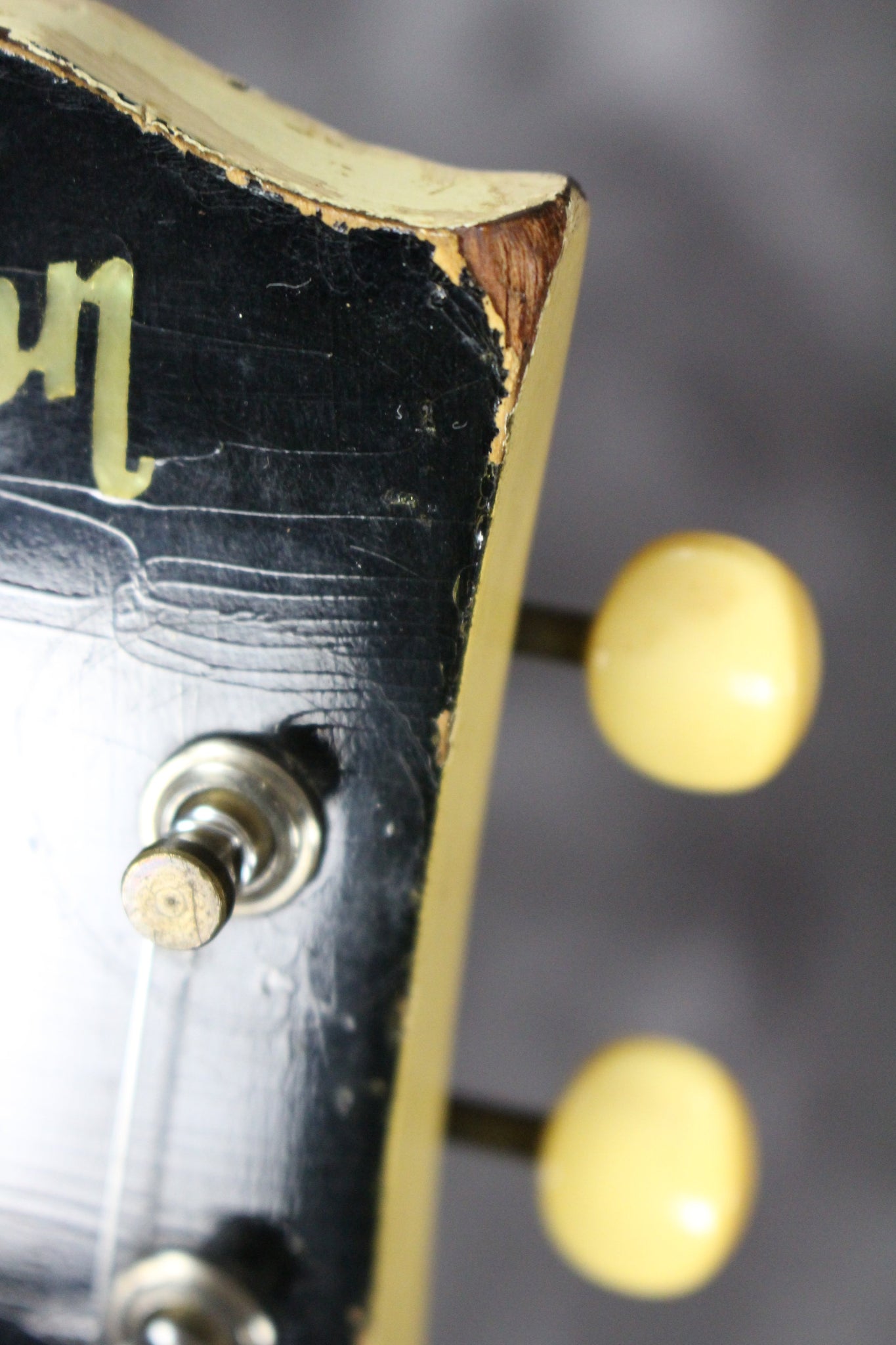 Cosmetics: This guitar is in good shape. It has light surface scratches on the body, dings, crazing and all the honest wear a 61 year old instrument can earn. Overall, this guitar plays very well and sounds fantastic.