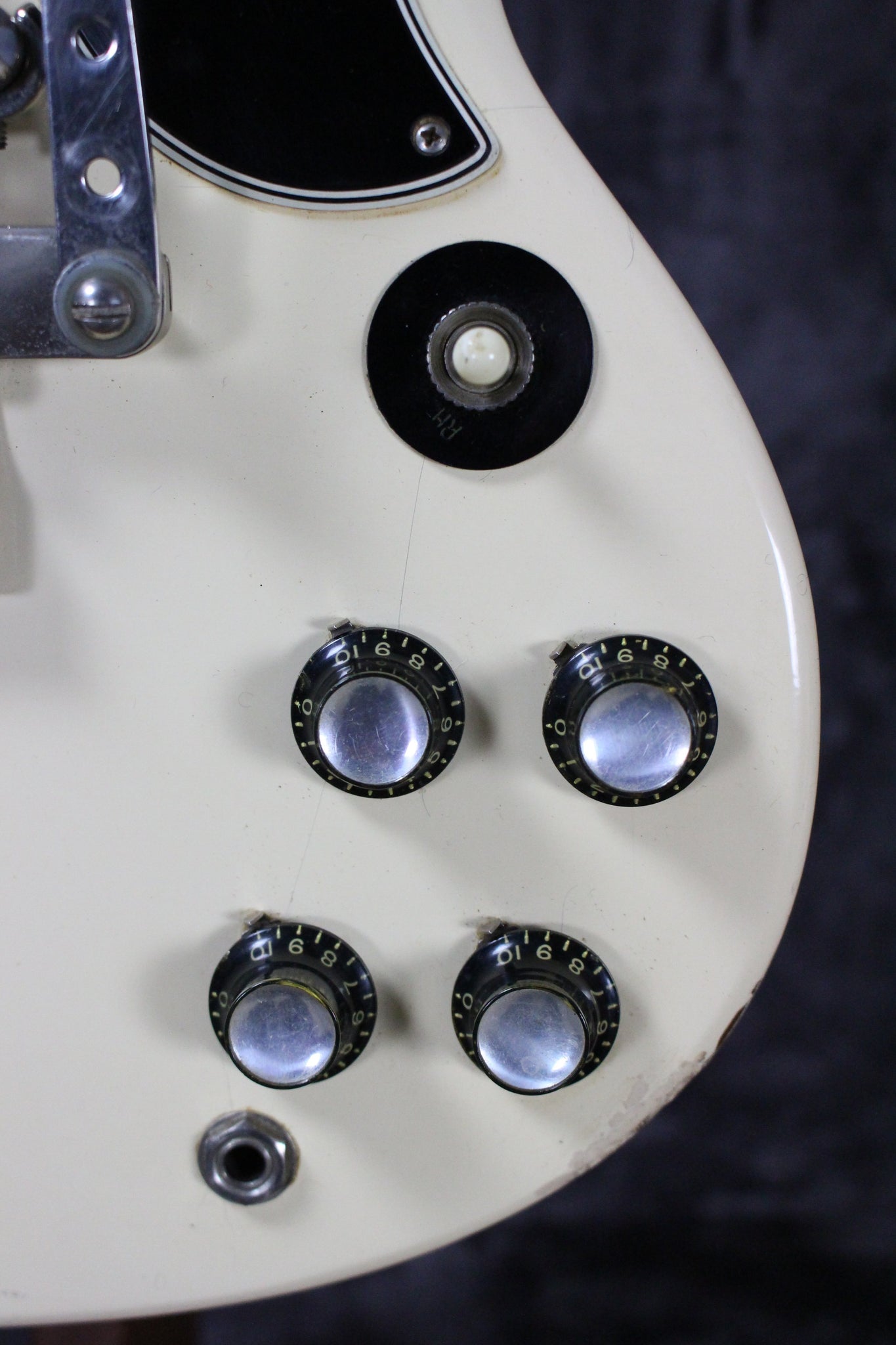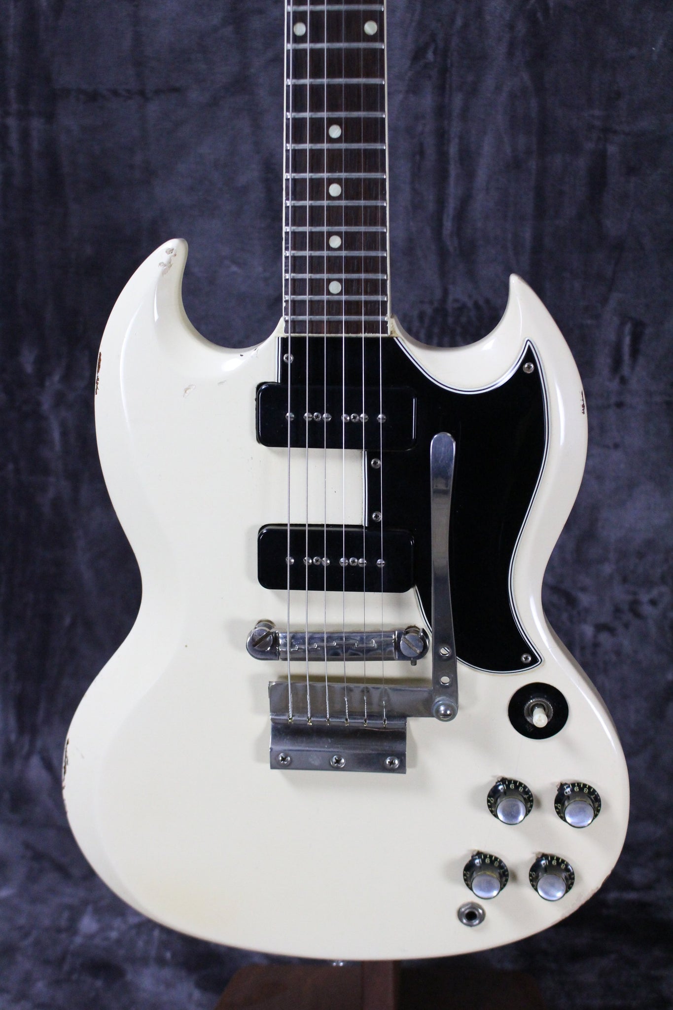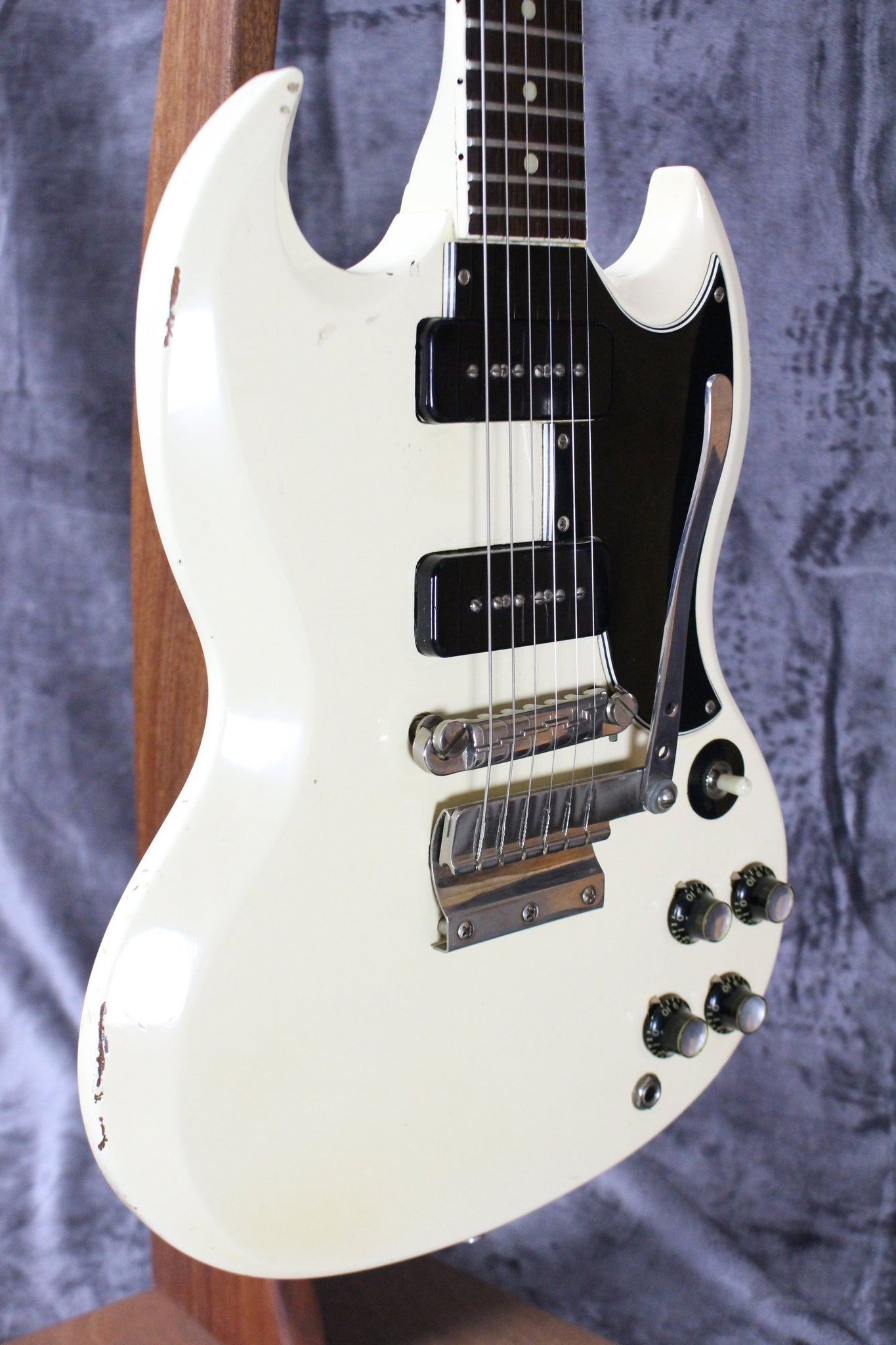 This 1964 Gibson SG Special in Polaris White is such a pure classic. Snarling, clear P90 tone and an ultra resonant, beautifully beveled Mahogany body. A beautiful guitar from a banner year in Gibson's history, it's a joy to play and sounds tremendous. It’s wonderfully aged, and ready for another six decades of play.