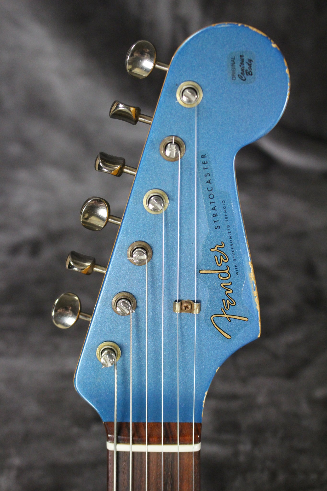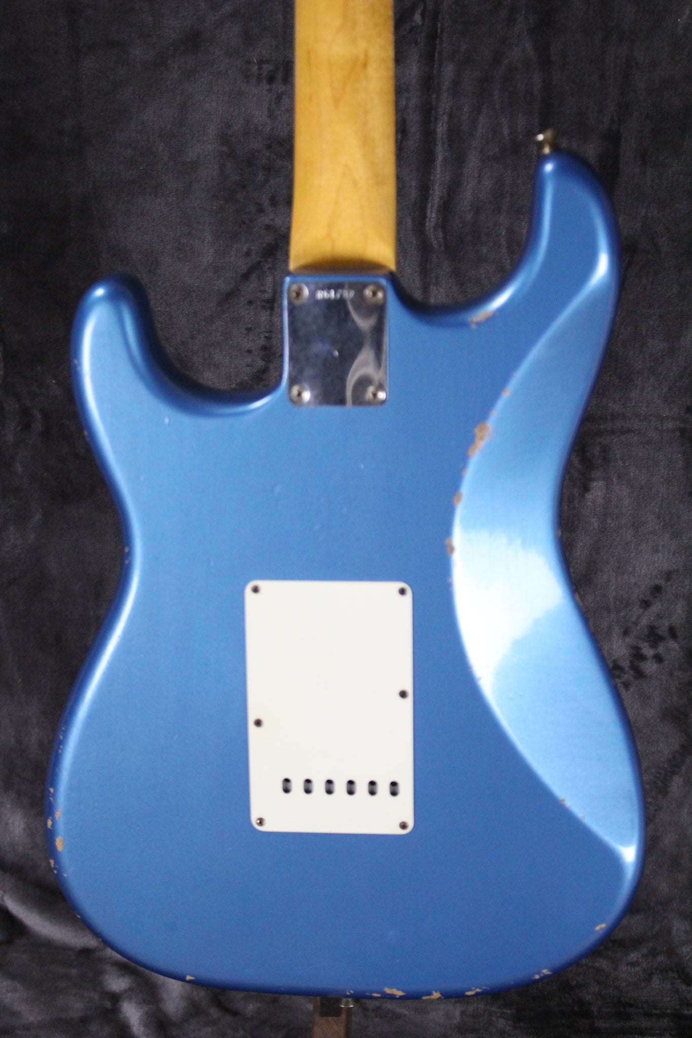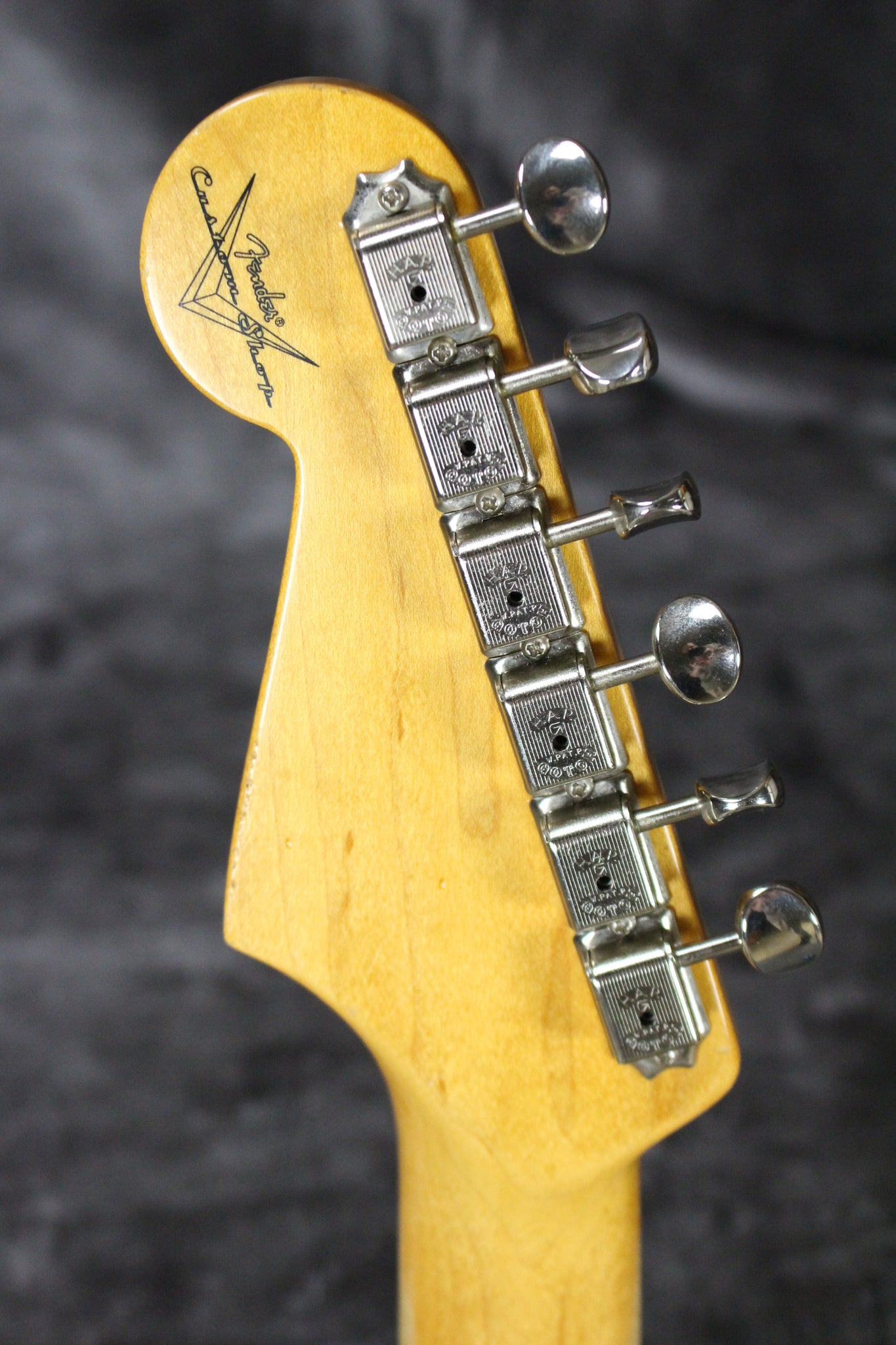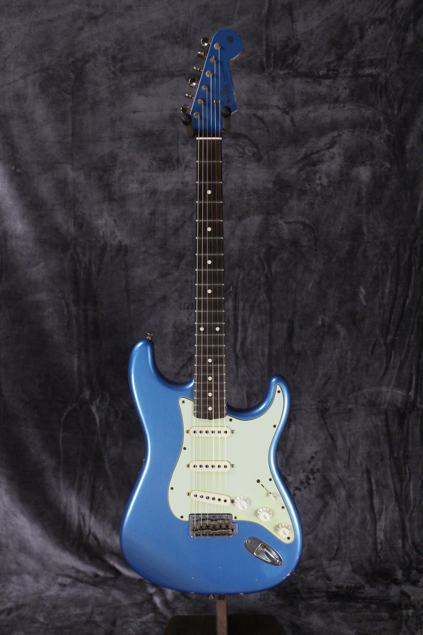 Pickups/Hardware: Fender Custom Shop single coil pickups, Gotoh HAP tuning keys, double Fender stamped vintage style saddles, vintage style synchronized tremolo bridge,white plastic knobs,  bone nut.