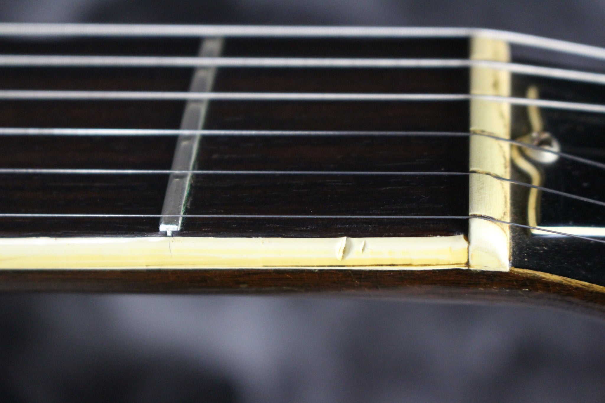 Playability: Our in-house luthier has just inspected, set up, and restrung this guitar with a new set of strings, and it is playing beautifully with low action and a straight neck.