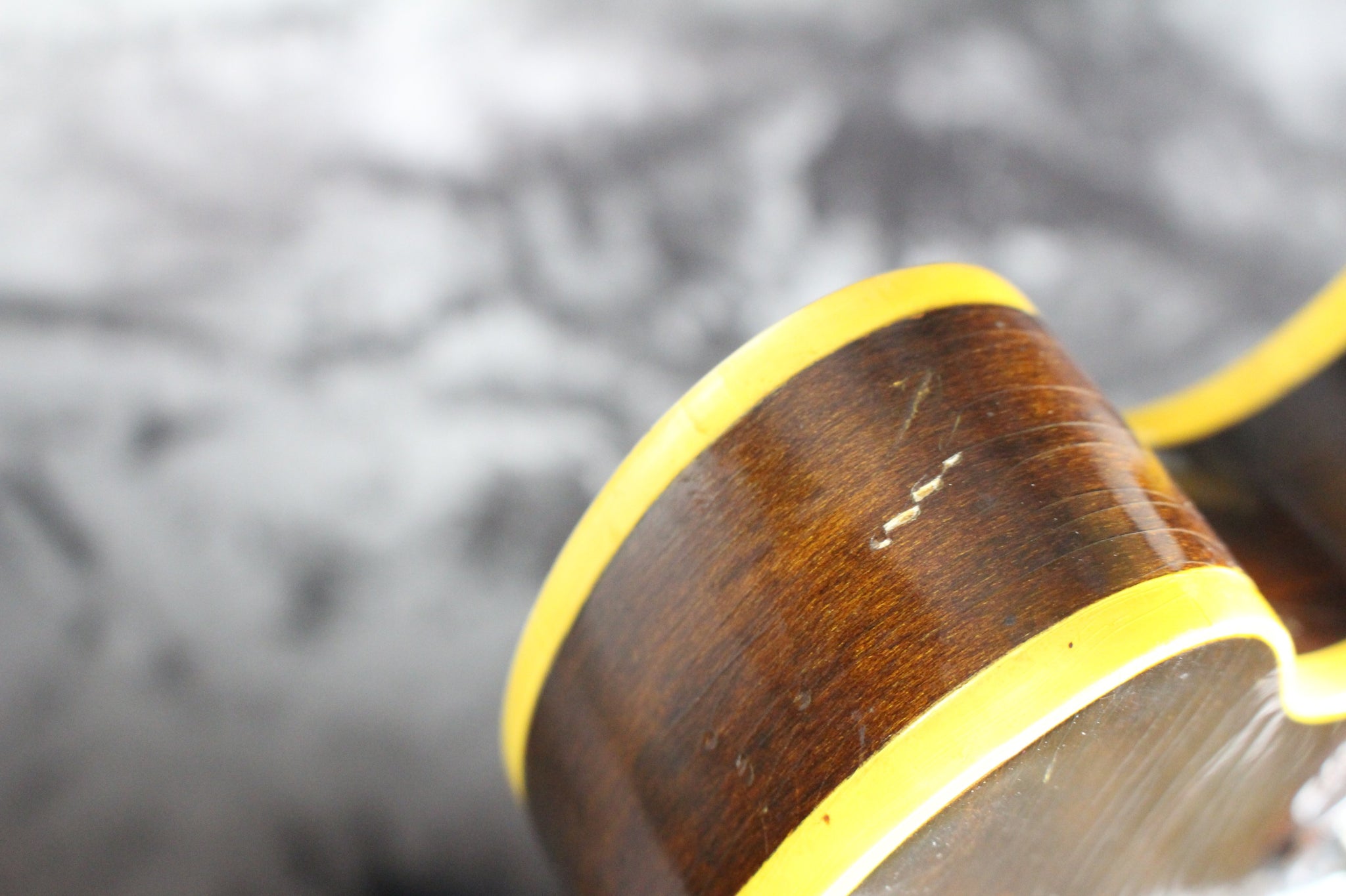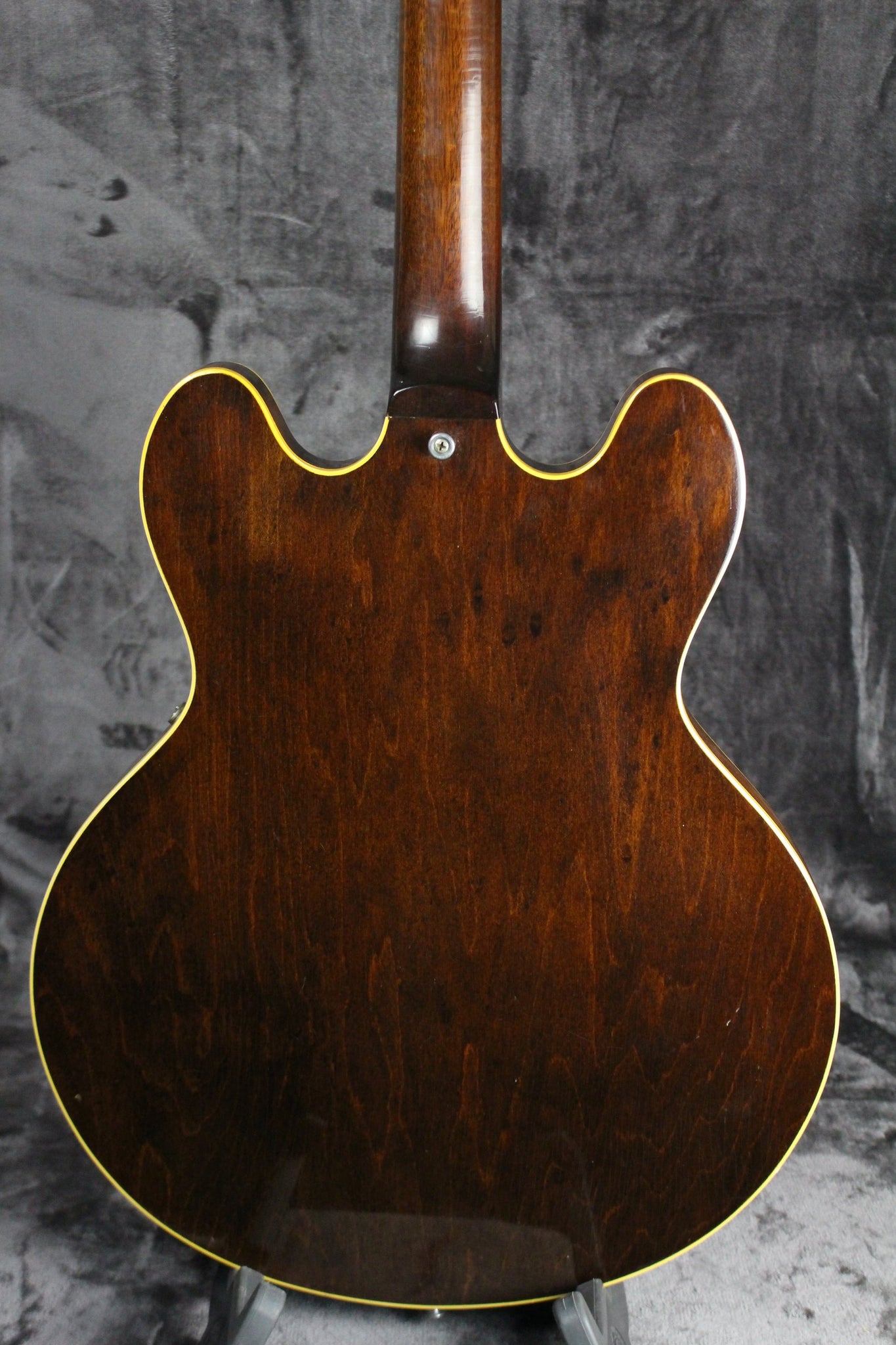 Body: The arched hollow-body features a bound maple top and back, mahogany sides and a Walnut finish.