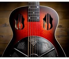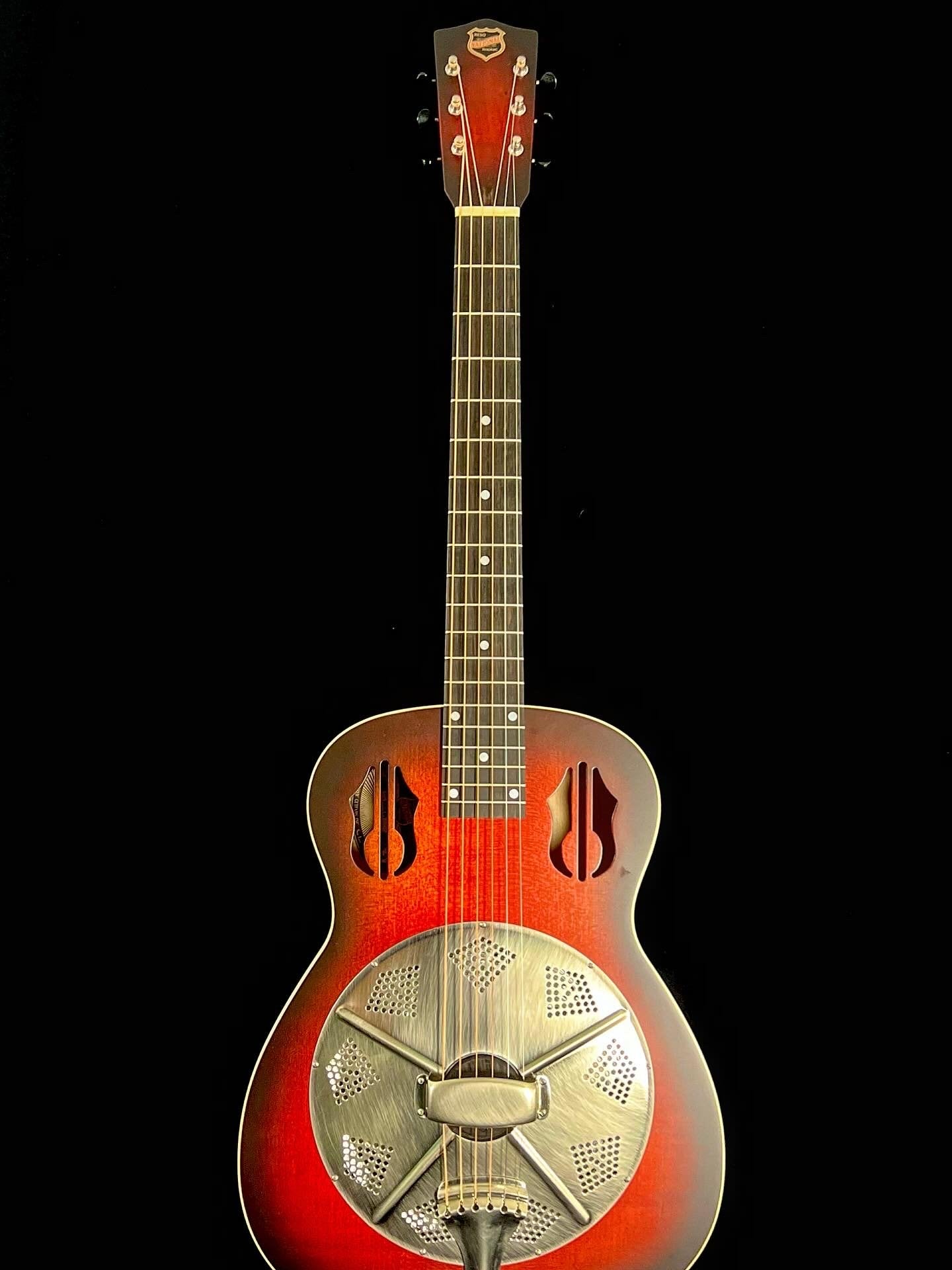 The National Rosita recreates the classic of the same name, originally constructed in the 1930s, with a cherry-red to blackburst finish on a handpainted maple body. The cathedral-style sound holes resemble the silhouette of a lyre, the instrument played by Apollo, Greek God of music. The 14-fret neck features an unbound ebony fretboard, peghead style tuning machines, and mother-of-pearl position markers. A ribbed-sieve coverplate with rubbed nickel finish complete this stunning guitar. The Rosita offers the warm, resonant tone wood body Nationals are known for.
