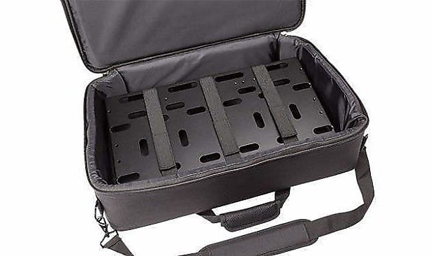 The innovative patent pending design of a Voodoo Lab® Dingbat pedalboard delivers a rugged, lightweight platform for organizing your pedals and keeping cables neatly tucked away and out of view. Crafted from superior American 6061-T6 aircraft-grade aluminum, each pedalboard is made in Sonoma County, California and includes a tour ready gig bag. At 22" x 13 1/2", the medium Dingbat is ideal for assembling a typical size board with room for 6 to 10 effects. Hook-and-loop tape is provided to attach pedals, also zip ties and 4-way tie mounts to secure cabling underneath.