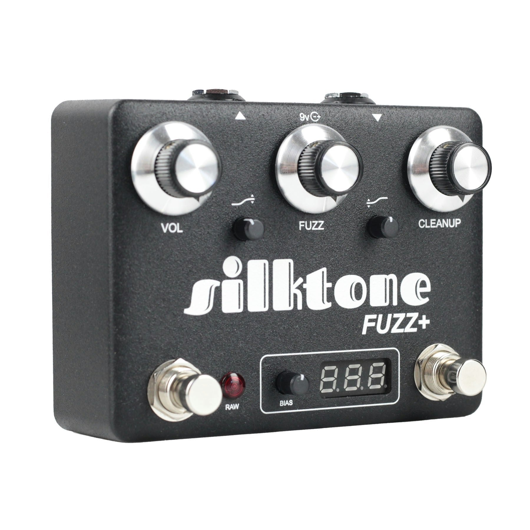 The Silktone Fuzz has been updated with some cool new features starting with a couple of tone controls to subtly shape the sound of the fuzz. The tone controls are a product of the cleanup circuit so they shape the tone before heading into the fuzz. The bass shape goes from a tight and forward sound when turned down to full and round when turned up. The treble shape subtly rolls off the high end for a softer fuzz tone. The shaping is much more apparent at cleaner settings too.