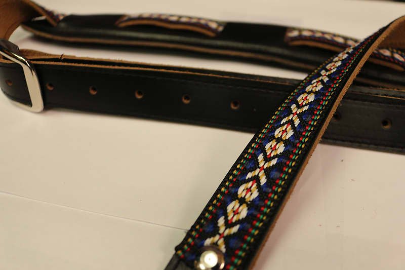 backed with suede for a solid grip and is extended to cradle both sides of your shoulder. Packed with shock absorbing rubber inlay that reduces discomfort with heavy instruments. Each strap can be worn with or without the belted tail extender. Leather wears beautifully as it ages. Enjoy!