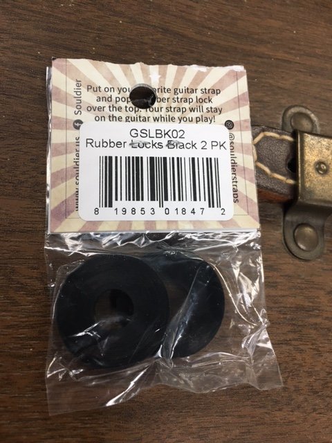 Put on your favorite guitar strap and pop a rubber strap lock over the top. Your strap will stay on the guitar while you play!