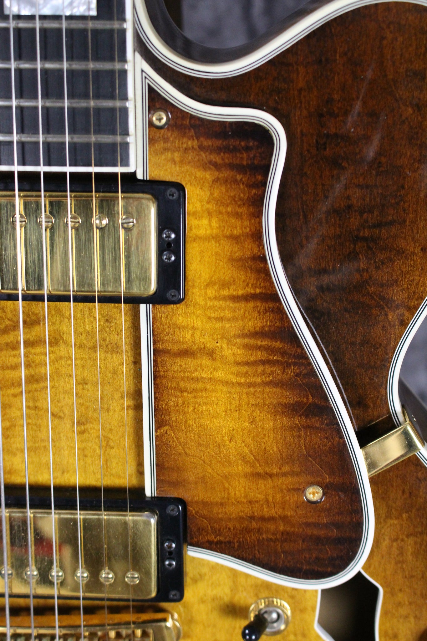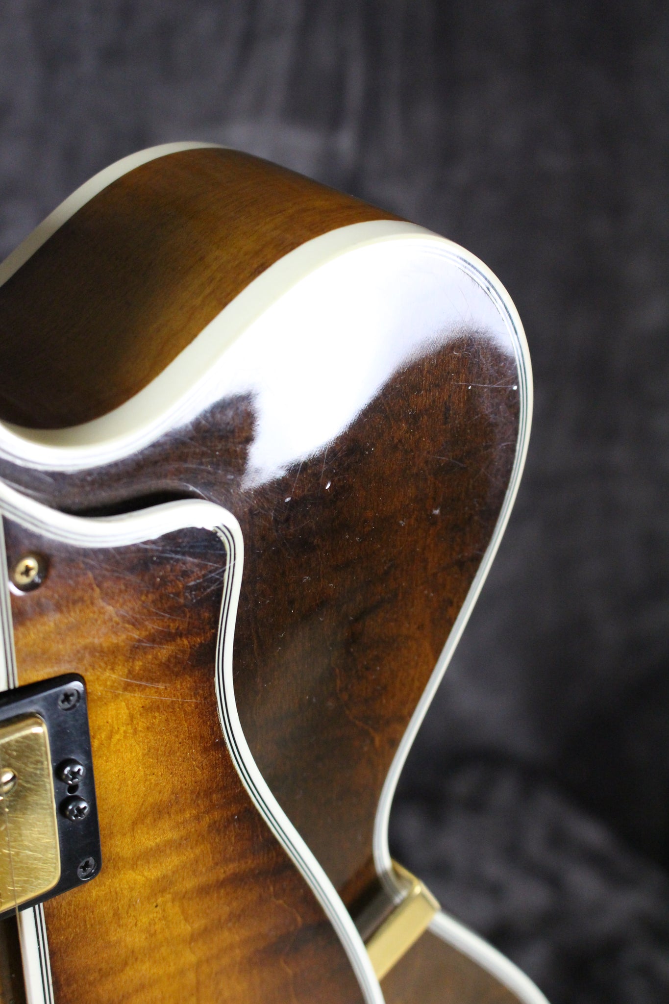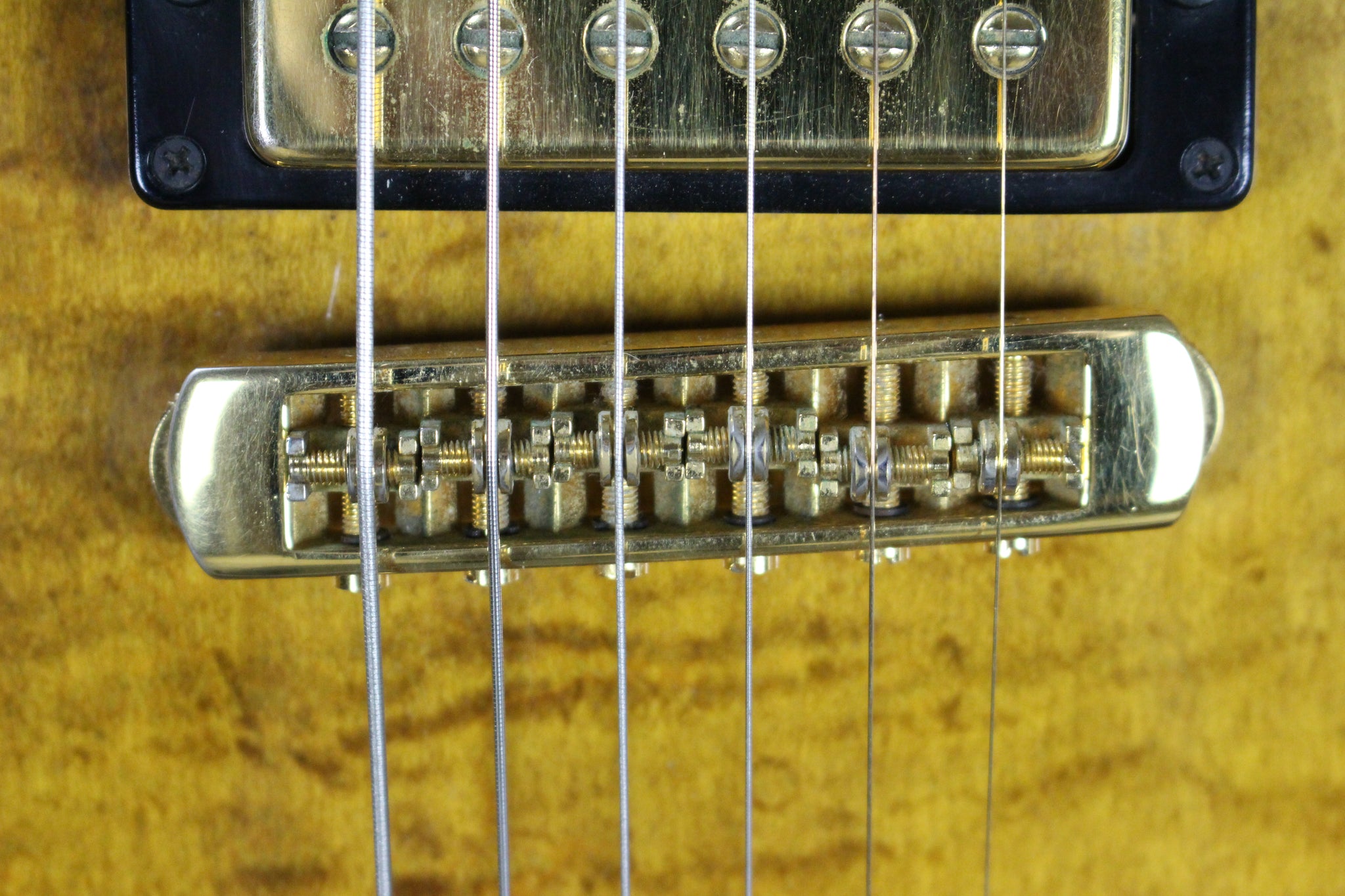 Pickups/Hardware: Schaller PAF pickups, Grover Rotomatic tuning keys, trapeze tailpiece and tune-o-matic bridge, gold knobs, bone nut.