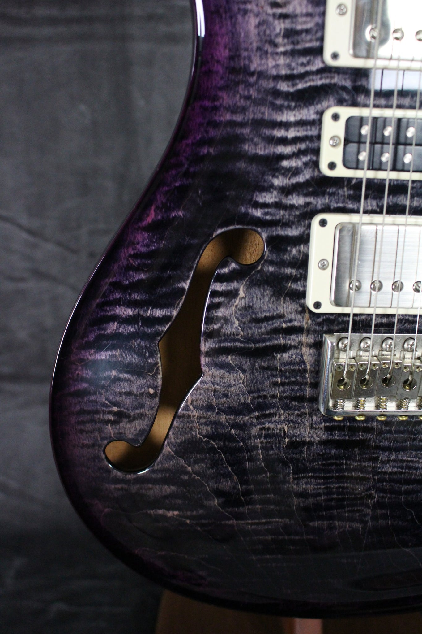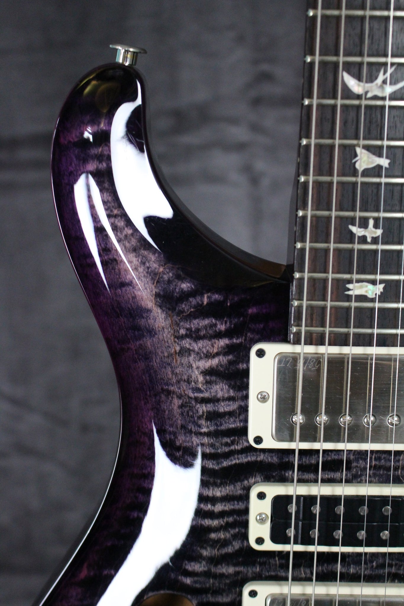 Top: Carved Figured Maple top with a nitro trans purple finish