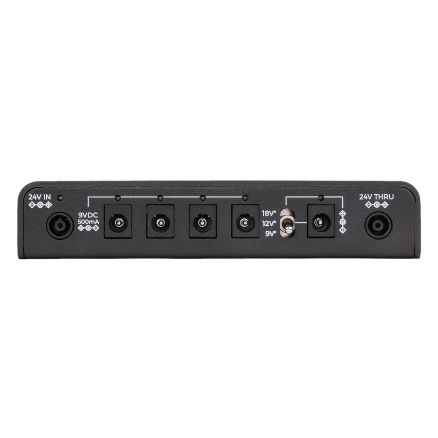 The Canvas Power 5 has 5 isolated power outputs delivering up to 500mA of clean power at 9v. Two of the outlets are variable voltage, letting you switch between 9v, 12v, and 18v for powering high-voltage pedals. It also includes a USB-C port for powering devices like your phone or tablet while you play.